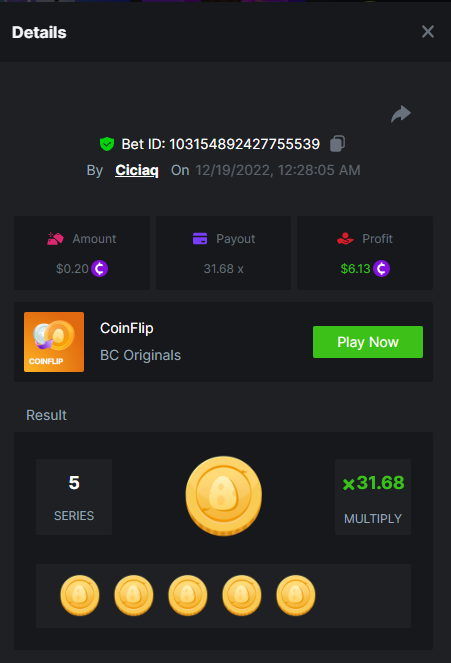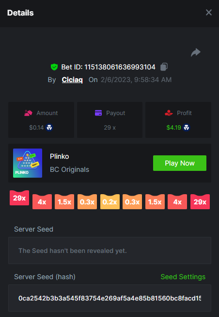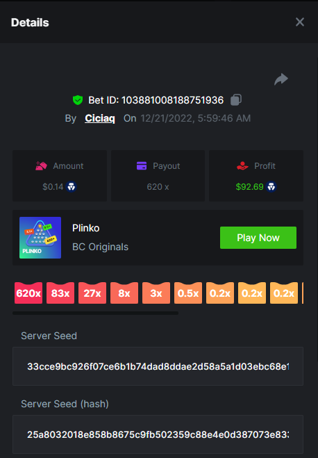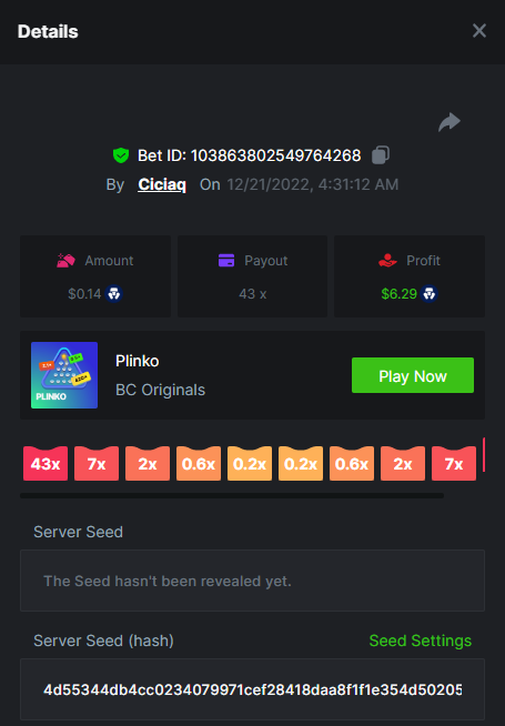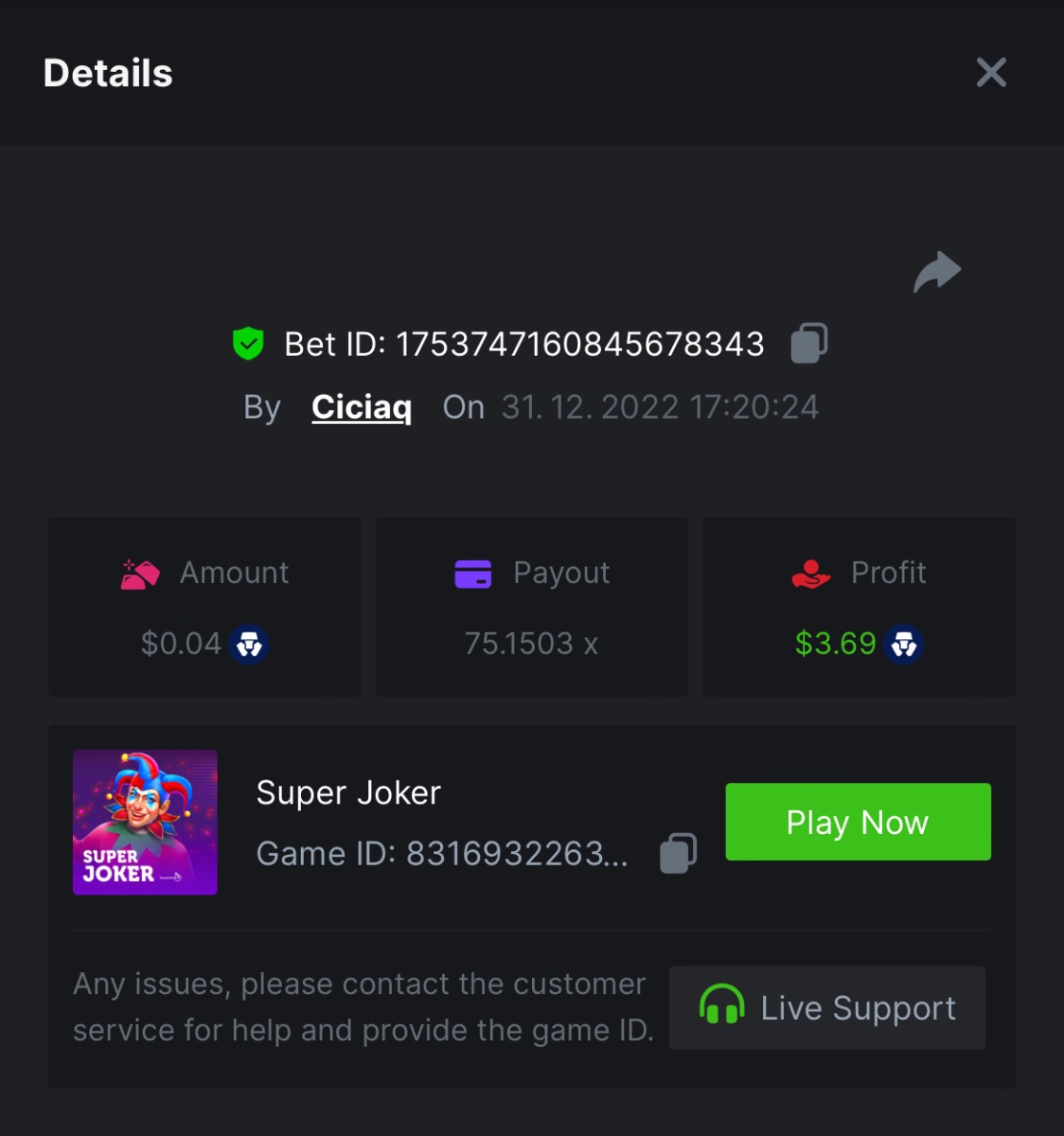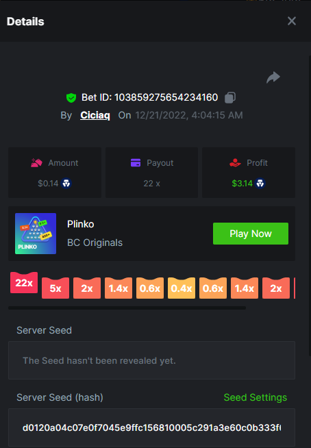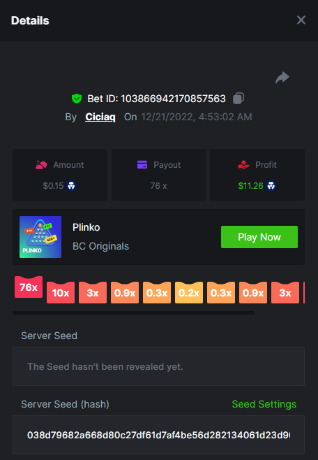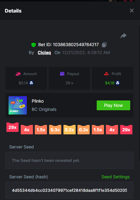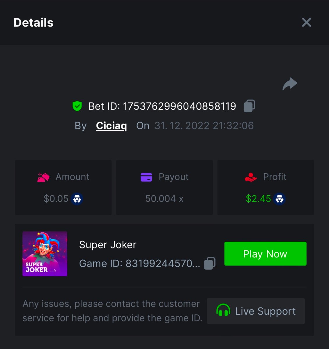 14. Book of Elves - 120.62x - https://bc.game/#/sd/10ZYH8DLGT55W3 Book of Xmas - 172.67x - https://bc.game/#/sd/10ZYKF4BSFYQS3 Wild Santa II - 21.02x - https://bc.game/#/sd/10ZXHYK4CVZGNN Santa’s Wild Night - 38.41x - https://bc.game/#/sd/10ZXYD8RFBZ5SJ