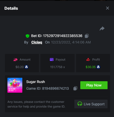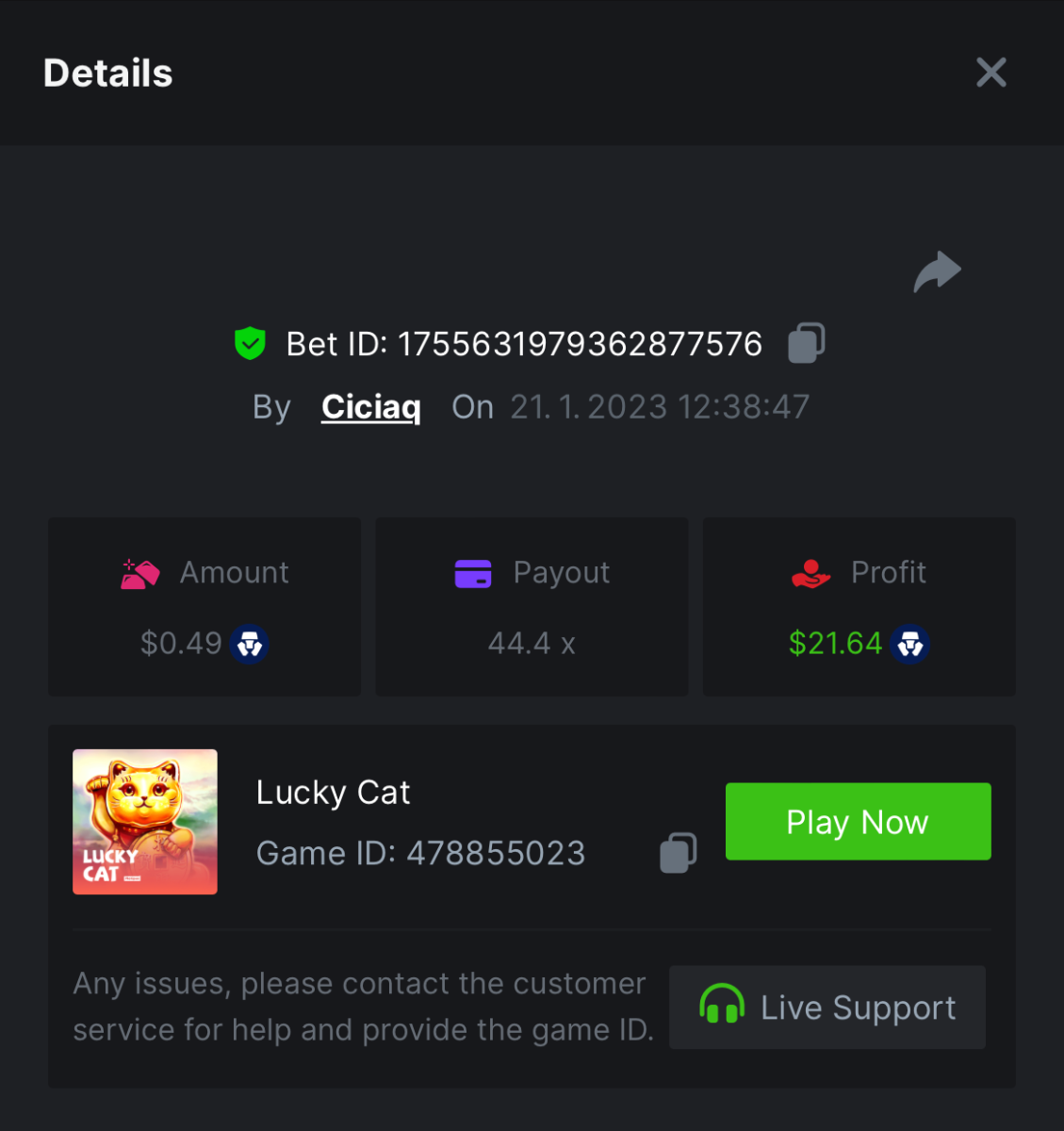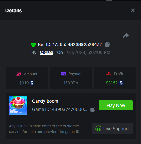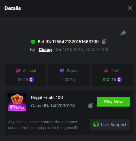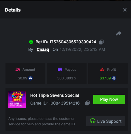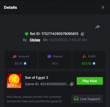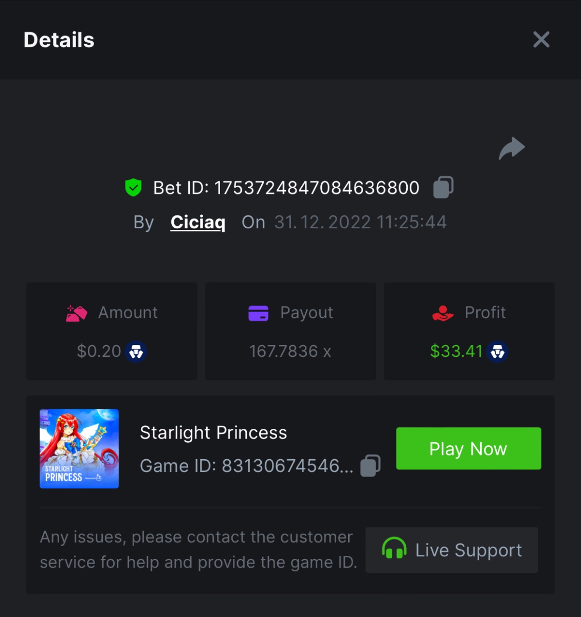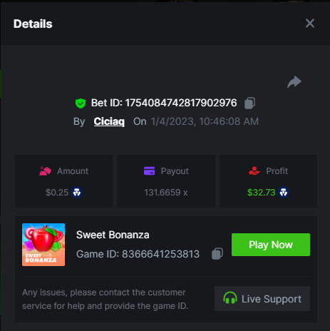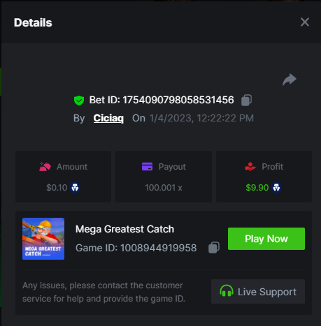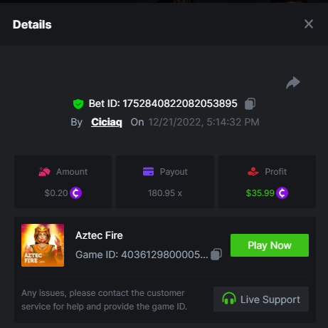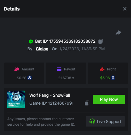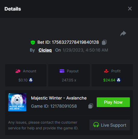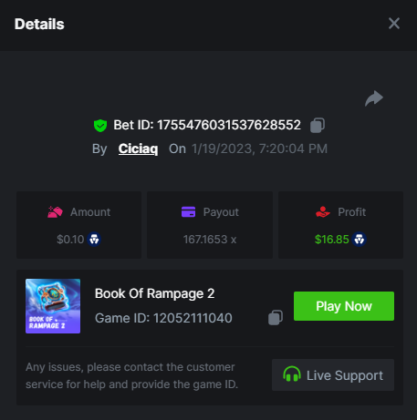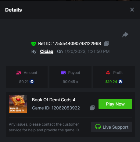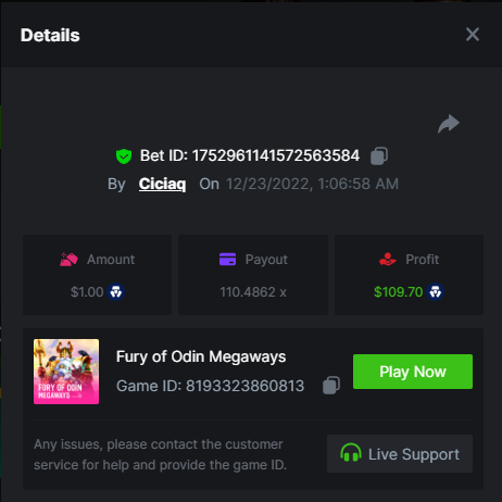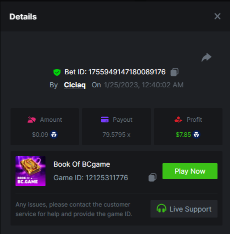 8. Story of Medusa 2 - 15.02x https://bc.game/#/sd/1123634SNL03KJ Wolf Fang - Snowfall - 21.67x https://bc.game/#/sd/1123253W7HMY37 Book of BCGAME - 79.58x https://bc.game/#/sd/11235VK3ZZCAAB Book Of Rampage 2 - 167.17x https://bc.game/#/sd/111Q81IG8W7H8Z Book Of Demi Gods IV - 90.05x https://bc.game/#/sd/111S31U2Y2UGPF Queen of Ice- Frozen Flames - 174.09x https://bc.game/#/sd/111TIXY9T5KKR7