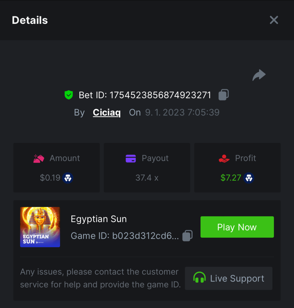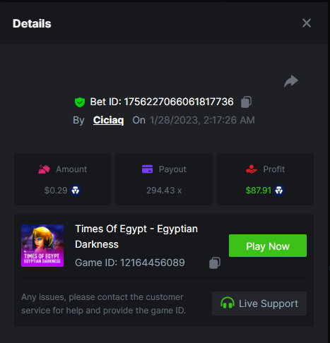 6. Majestic Winter - Avalanche - 247.05x https://bc.game/#/sd/112AMVQXAK8VTF Book of Wolves - 200.70x https://bc.game/#/sd/112AO7CEGTEBDF Times Of Egypt - Egyptian Darkness - 294.43x https://bc.game/#/sd/112ARJPKT3XDLF