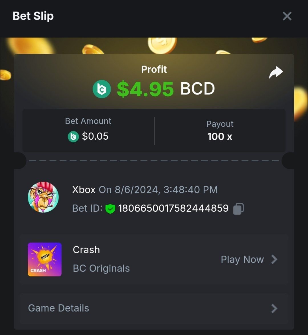 1. Crash Challenge https://bc.game/#/sd/124LW34JUKWUGZ Slot Challenge https://bc.game/#/sd/124OX4AIX97UBN Lottery Challenge Sports Challenge Ticket id: 2432623177822773561 Deposit and Wager