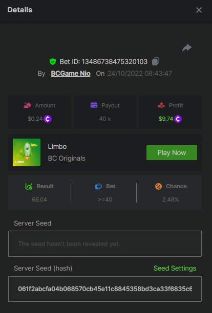 $2.5k Prestige Limbo Challenge #52 Starts: 24 October 13:30pm GMT Ends: 31, October 13:30pm GMT Hey, hey, VIPs! Play Limbo and you have a shot at winning big prizes! Not only will the Top 10 winners get their share of the major prize, but the remaining $700 will be split between everyone else. To sweeten things further, any participant who completes the extra bounty will receive an equal share of the $500 prize pool. Trick or treating and multiplier hunting. This will be a bone-chilling Halloween! What's the Challenge? Win the highest multiplier you can on on BC.Game's in-house game, Limbo. If there is a tie, the player with the higher average bet amount (in USD) shall be the winner. If there is a tie in the amount and payout, the one who posted or edited his post first will be considered in the Ranking. Minimum VIP There's no minimum VIP level Minimum Payouts Minimum payout to qualify is 20x Minimum Bet Size $0.15 USD equivalent Eligible Coins All cryptocurrencies are eligible (excepting JB) Available Prizes 1st Place....... $500 2nd Place..... $300 3rd Place...... $200 4th Place......$100 5th Place......$50 6th-10th.........$30 All other participants.........$700 Bounty Prize...$500, equal share. EXTRA BOUNTY Share a winning bet with 500x multiplier or above and receive an equal share of the $500 prize pool! Original rules apply with all minimum requirements. How to Enter To enter, copy the link of the bet you'd like to submit. Once you've copied it, paste it as a reply to this thread like so: Link: https://bc.game/#/sd/10VQ2ASHFB6KUR In the same post, upload a screenshot of your win by clicking the game ID WITH VIEW IN USD mode ENABLED (accessible at the bottom of dropdown menu for your wallet up top. This way, we can ensure that your bet indeed met the minimum requirement at the time of placing it: Link: https://bc.game/#/sd/10VQ2ASHFB6KUR Please combine all of your hits together in a SINGLE post. Edit your existing post for additional hits, don't create a new post. Each eligible entry must have the Bet Slip URL, failure to include it will disqualify participation in the event. Bet Slip image is not mandatory. Bets must be posted within 24 hours of placing bet in order to keep things fair for everyone. Bets must be made during the specified time window stated above. This thread will lock automatically when the time period is over. One (1) entry per household. Anyone found attempting to win multiple prizes will be disqualified from this challenge as well as all future challenges. Failure to follow instructions will result in your submission being null and void. By entering this challenge, you acknowledge that BC.Game has the final decision on results and placement. Payouts will be distributed after the event is finished. Please note that it could take anywhere between 24 hours to 7 days after the completion of the event. May the candy be with you!