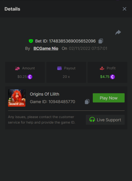 Starts: 19, October 2:30pm GMT Ends: 26, October 2:30pm GMT Hey VIPs! We're pleased to be back in PG Soft to host our Top Tier battle. This week your challenge is to accomplish the highest multiplier in eight selected games. The prize pool of up to $4,000 will be split between the winners, and to make it even more exciting, any participant who completes the extra bounty will receive an equal share of 10% of the prize pool. The battle will run from October 19 at 2:30 PM GMT until October 26 at 2:30 PM GMT. Be the pilot of your stories and fly as high as you can. – (details further down). Eligible Games Win the highest multiplier on the PG Soft games listed below Mr. Hallow-Win Vampire's Charm Cocktail Nights Wild Bandito Rise of Apollo Battleground Royale Dreams Of Macau Buffalo Win The highest multiplier reached in each game will be added together and counted as total points. Bonus buys are allowed. If the player submits multiple winning entries for the same game, the entry with the highest multiplier will be valid. Minimum VIP Tier Must be VIP04 or higher in order to enter this event. Minimum Payout Minimum payout to qualify is 10x (in any game) for a valid entry. Minimum Bet Size Mr. Hallow-Win - $0.30 Vampire's Charm - $0.20 Cocktail Nights - $0.20 Wild Bandito - $0.20 Rise of Apollo - $0.20 Battleground Royale - $0.20 Dreams Of Macau - $0.20 Buffalo Win - $0.20 Eligible Coins All cryptocurrencies are eligible (excepting JB, and BCL). Free Play Mode is not valid for this event. Prize Pool & Reward Breakdown The winners will win a share of the prize pool based on the detailed ranking below. Anyone who completes the side bounty will receive a share of a 10% of the prize pool. BOUNTY - Share a bet that shows exactly 50x payout on any of the ten games within the timeframe of this event and you will receive a share of 10% of the prize pool! If nobody wins exactly the payout, the player/s closest to the payout will win this bounty! Original rules apply with a minimum bet, minimum payout & VIP. How to Enter Access the game to select your Bet ID, click on the Share icon (↷) and then Copy link. Return to the topic, paste the link in the field "Reply to this topic..." E.g.: https://bc.game/#/sd/10VD2L3WKXL98Z Each eligible entry must have the Bet Slip URL, the non-inclusion of the link will disqualify participation in the event. In the same post, upload a screenshot of your win by clicking the game ID WITH VIEW IN USD mode ENABLED (accessible at the bottom of dropdown menu for your wallet up top, and Submit Reply. Done! This way, we can ensure that your bet indeed met the minimum requirement at the time of placing it: Example post - Link: https://bc.game/#/sd/10VD2L3WKXL98Z Good luck everyone!