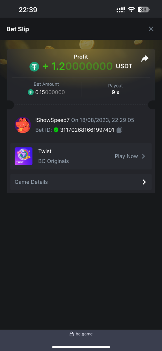 9. 22x: https://bc.game/#/sd/11FBFQ9UKI8UEB 33x: https://bc.game/#/sd/11FBFOK6ZXSYCJ 44x: https://bc.game/#/sd/11FBFNDXFEKKK3