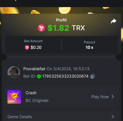 2. Bet 0.1$ - win 20.6x - link https://bc.game/#/sd/11TEI9S7O62CCB - Bet Id : 1791901757675299620