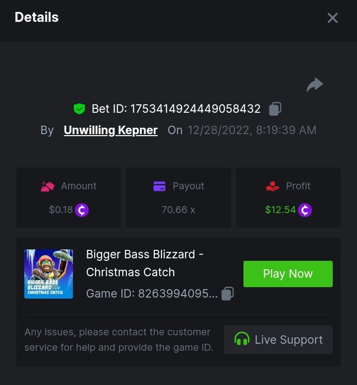 7. Here goes nothing big bass ate all my $15 good thing there's super joker for entry. https://bc.game/#/sd/110KWV061PPS0J https://bc.game/#/sd/110KXNDPGL3UOJ