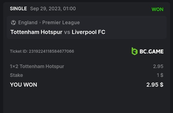 Hi boss! I wonder y I'm not included in payout I remember I opted in Premier league prediction Tottenham vs Liverpool and I won bet for Tottenham 1x2 @ 1$.