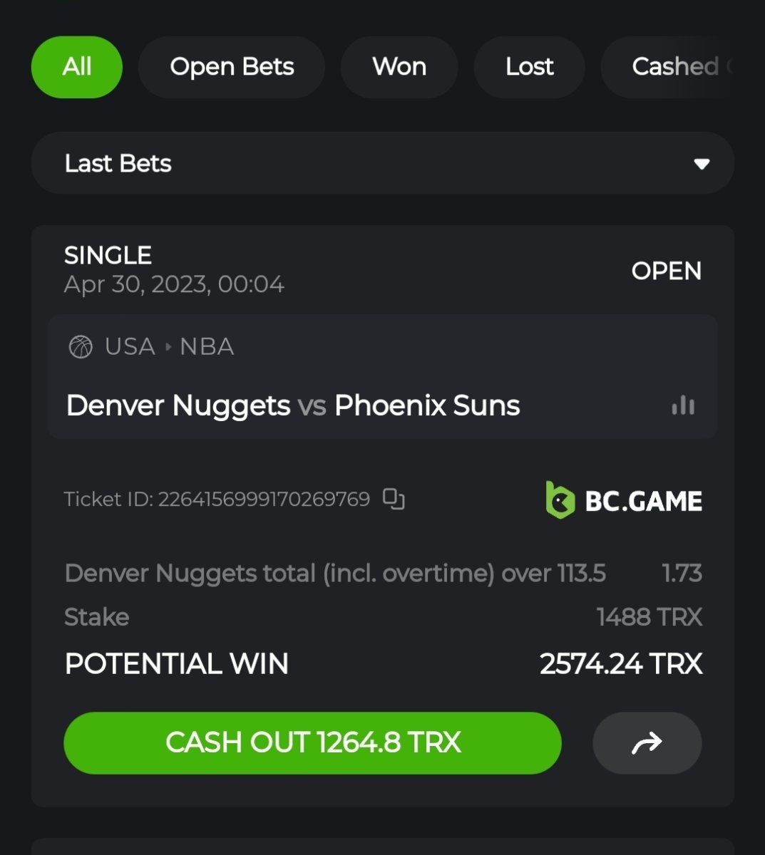 1. https://hash.game/#/sd/1150M5IGSHIN0Z Bet ID: 120623241680132312