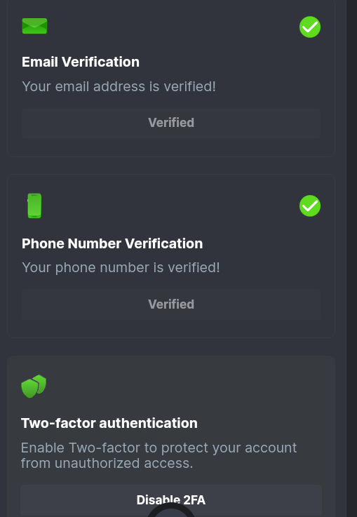4. Enable 2FA for your BC.Game account + Verify E-Mail & Phone Number (If 2FA already activated, keep it activated): DONE