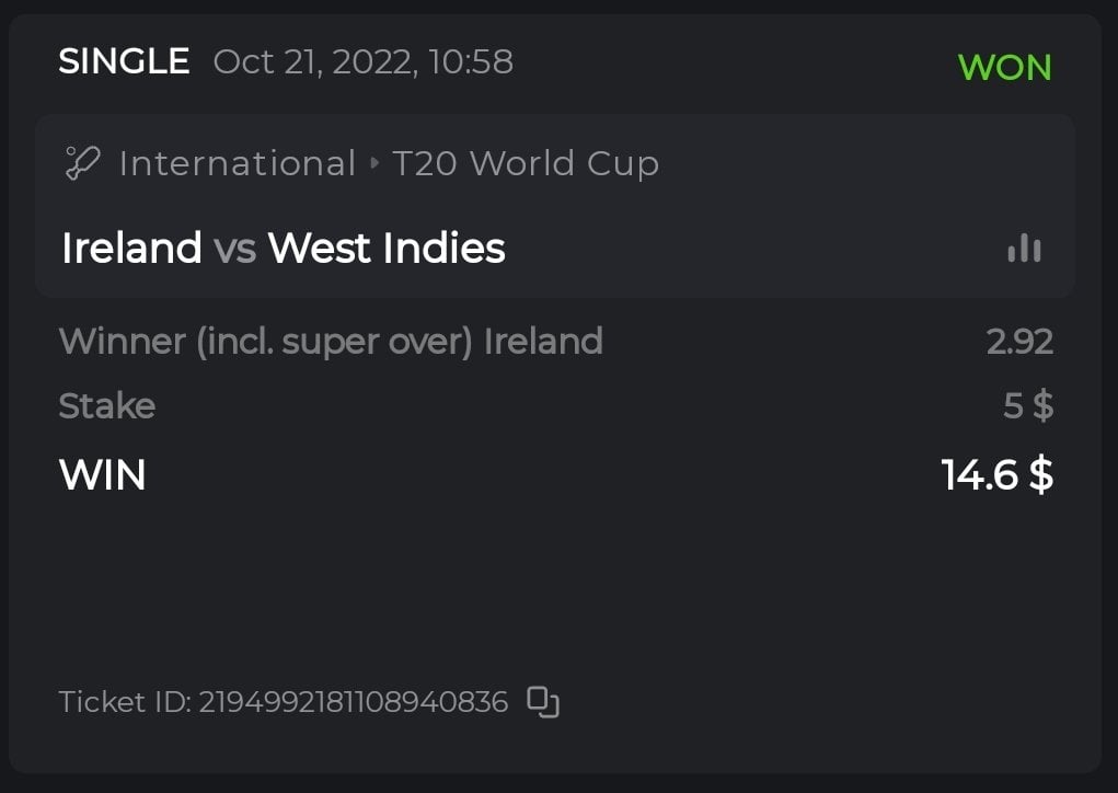 16. Hey @BCGame_Ninja, having read this I was wondering if we are allowed to make parlay bets other than just "Winner (Incl. super over)" markets for each game. I understand that we can't bet on 2 markets of the same game, but can we bet on "overs 0 to 10" on one game and "total run outs" of another game for example? Orrr did you mean you can't have multiple parlay bet wins that have the same game in either one of the parlay bets - that case only one parlay bet will be counted?
