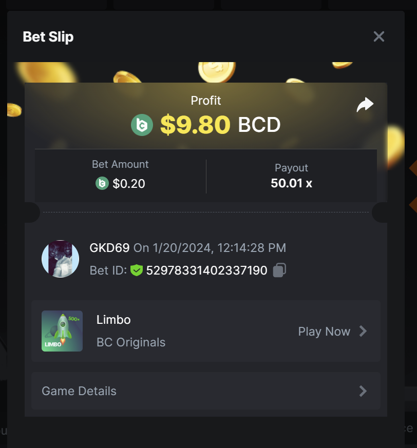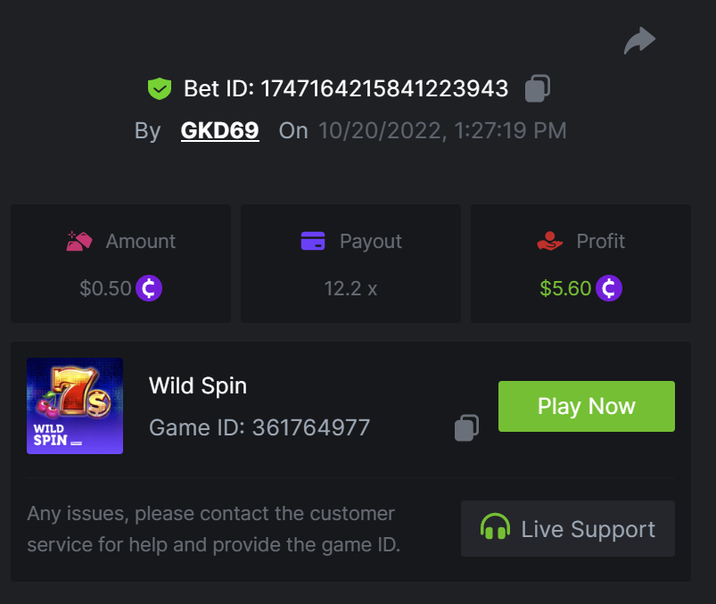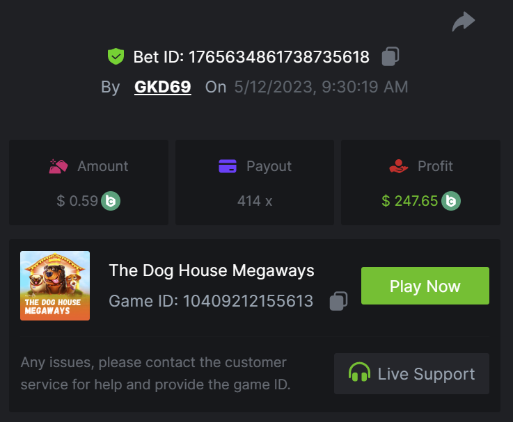6. Bet ID: 17542544812409468 https://bc.game/#/sd/119GBLDEB6UDQR