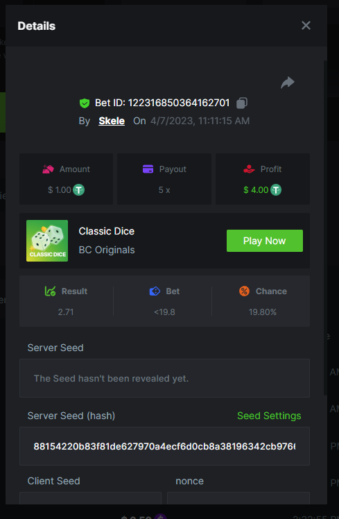 8. codes are always gone within a few minutes at best. After wagering a little over 3 mill at BC, i don't think there are any strategies that are always going to be profitable for people consistently. Really there are ones that seem like they are profitable more consistently than others, but there are still going to be days where you lose your ass doing them. Some of my best days were honestly when i would play manually on like limbo, or coin flip. Just watching the patterns and hoping that they would repeat. I was able to cash out a couple grand starting from like 50$ on both of them, but that is by no means consistent its just variance and luck. Any pattern you think you find is really just coincidence or should be anyway, because prior outcomes technically do not affect the chances of the current one. That being said they are still just hashing a seed, so it isn't going to be completely random, so maybe you will get lucky and notice something that you can get to repeat. If that happens, just don't change your seed lol.