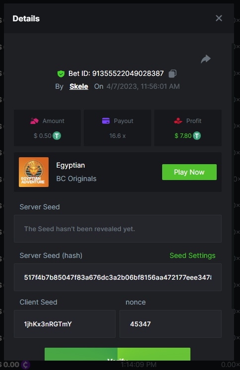 so where is this video and where is it you think they are changing these. Betting yet how and why are they changing them. Since every player gets the same seed and nonce on crash, I am still trying to think how they could even get any benefit out of manipulating. Also don't confuse being able to modify the client side stuff, by using the dev console, or a injection program, Since the outcome of all crash games should be calculated server side and then passed it back, i would like to know what exactly your doing to be able to compromise their servers and observe the behavior on the servers in their data center. That is really the only way it can work to keep the bets validated and proveably fair. Which essentially just means deterministic, so for a given seed and nonce it would always return the same result.