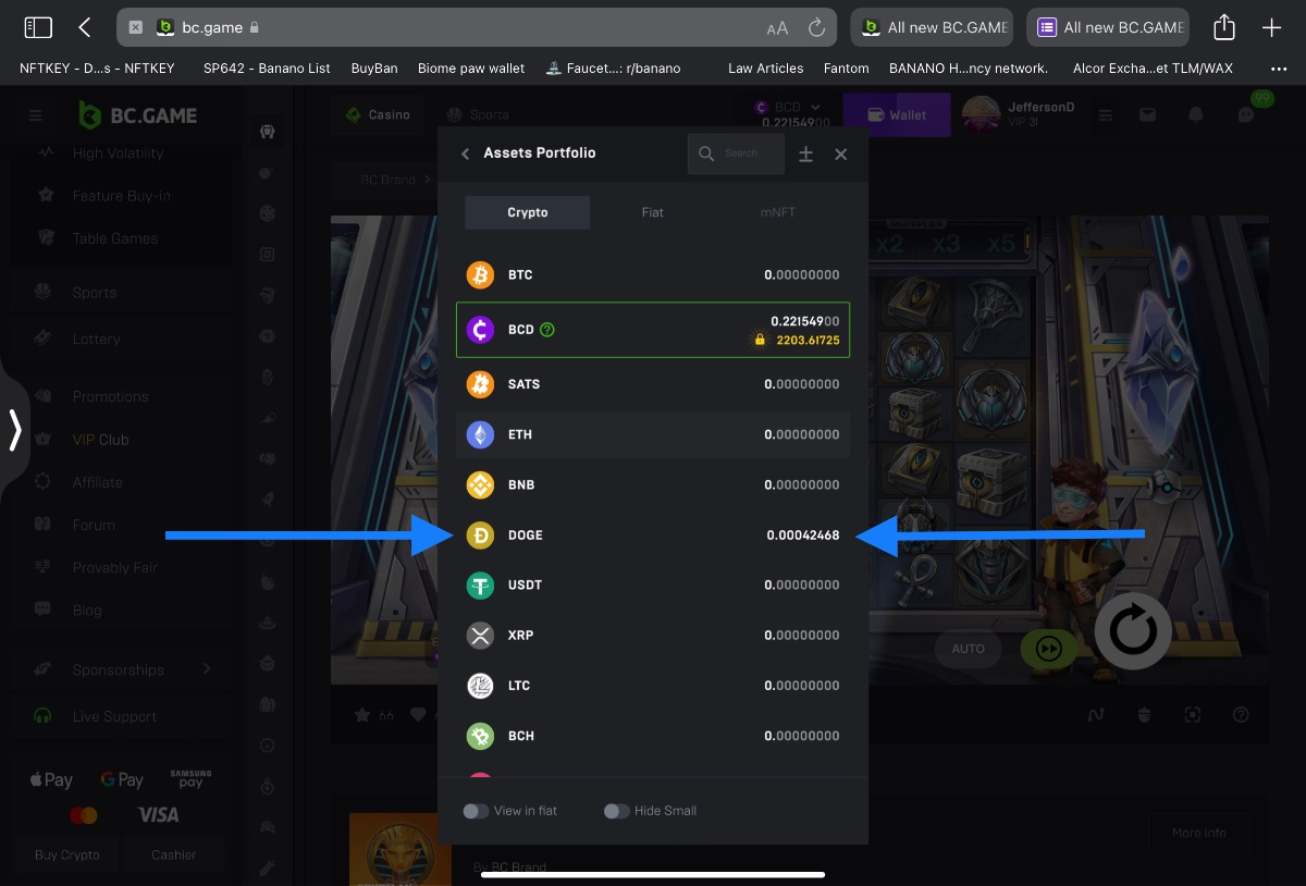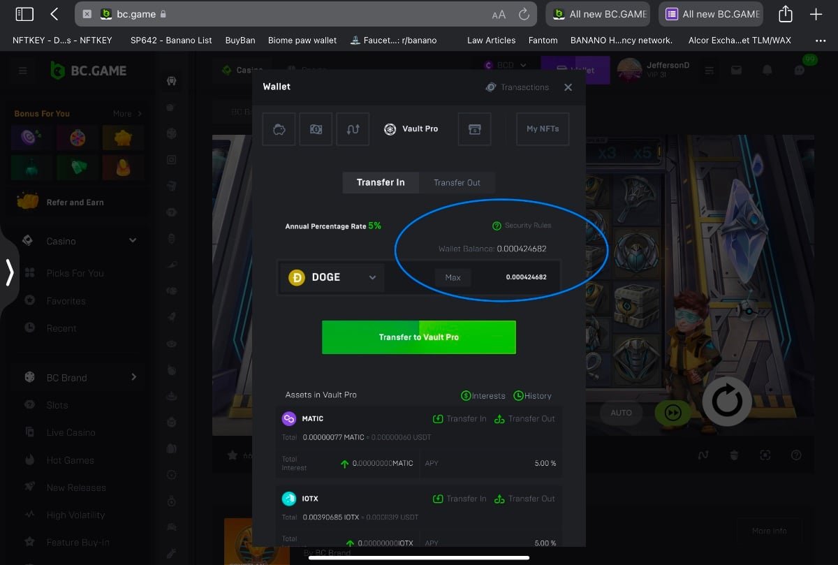 2. Unplayable dust decimal deposit into vault leaves the decimal balance stuck on player account balance until page is refreshed.
