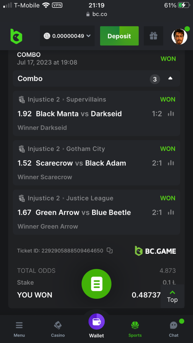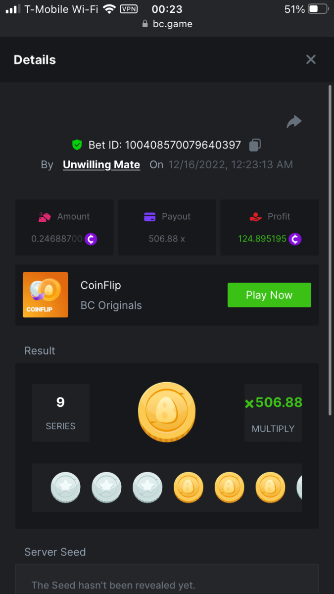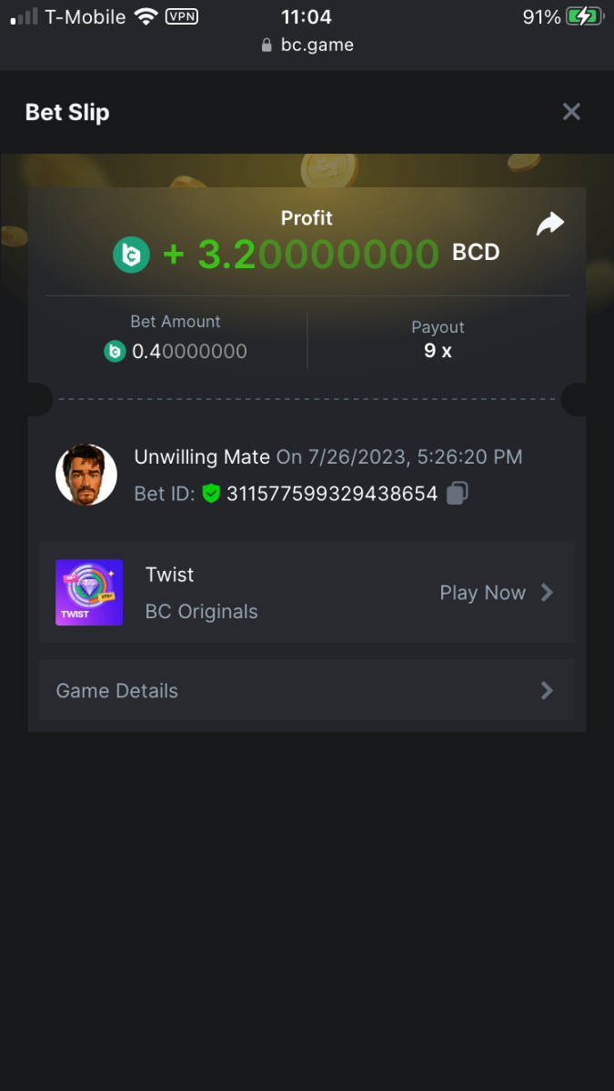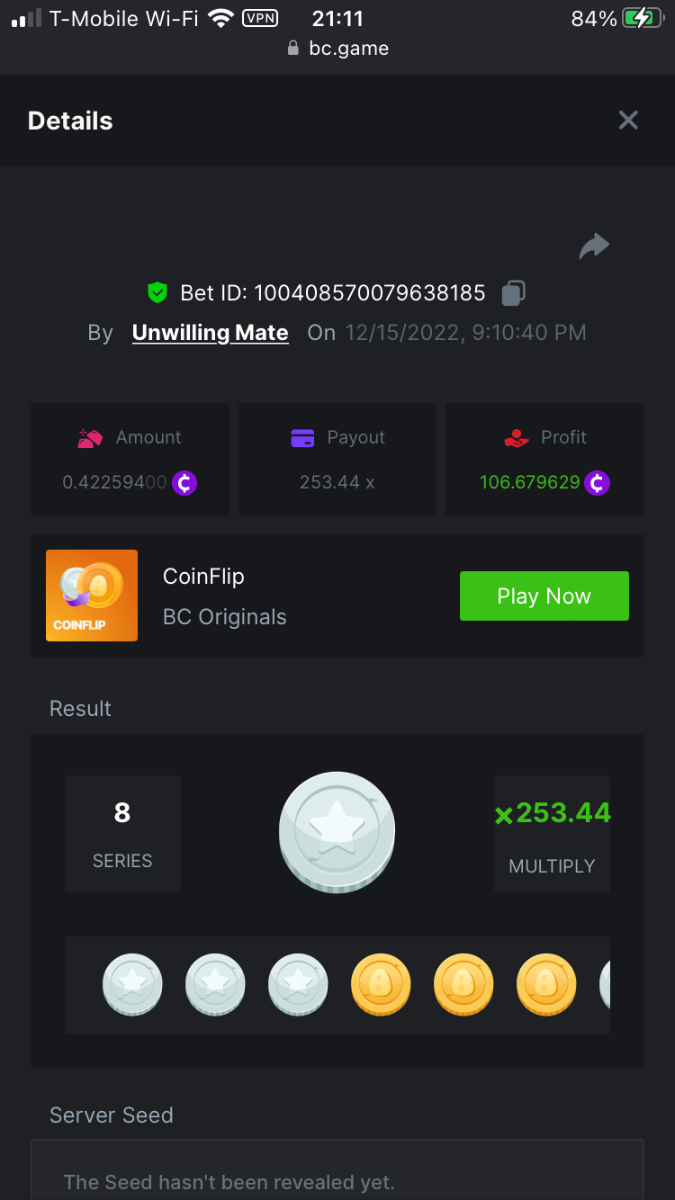 UnwillingNate replied to BCGame_Maxim's topic in VIP Challenges