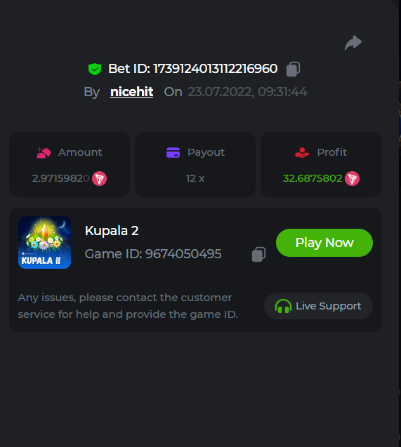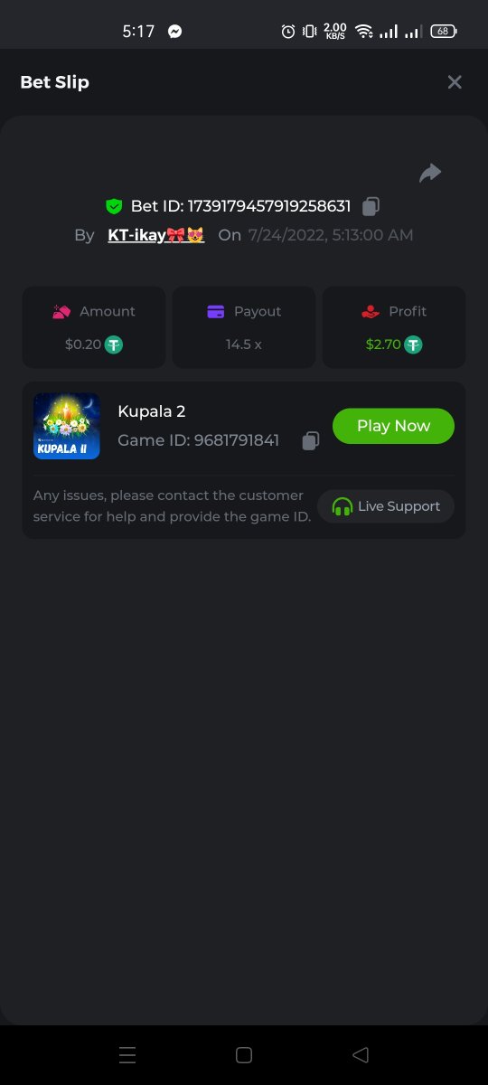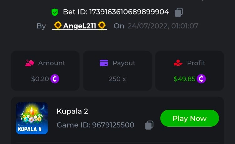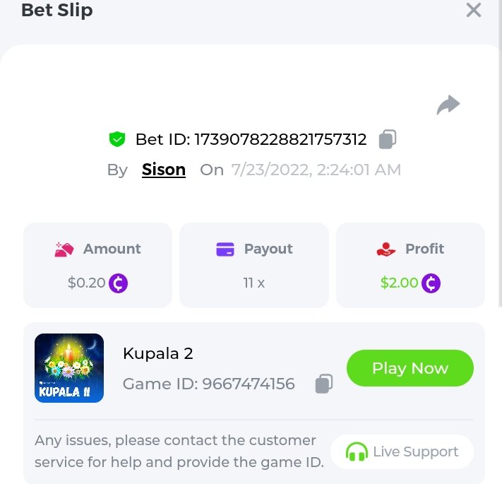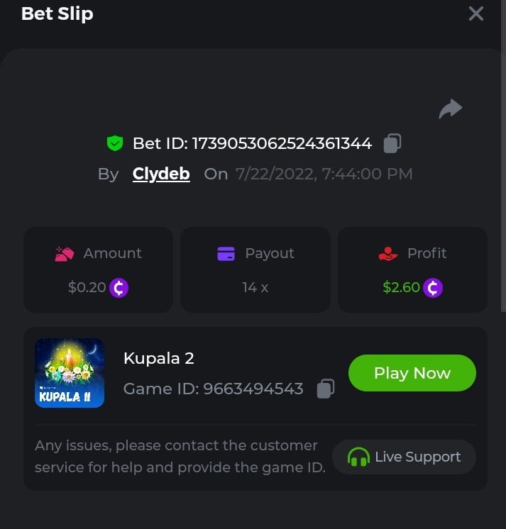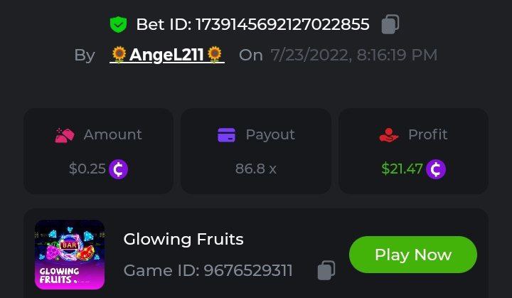 it shoud be $0.05 bet amount, 1037.6x multi payout, profit $51.88 bcd