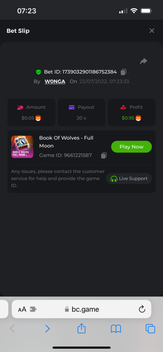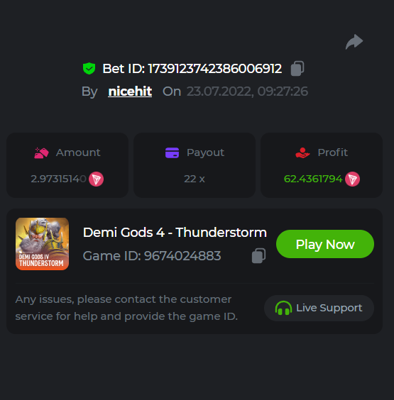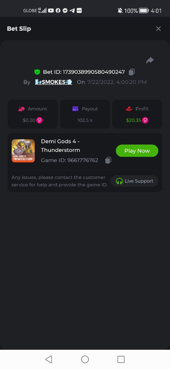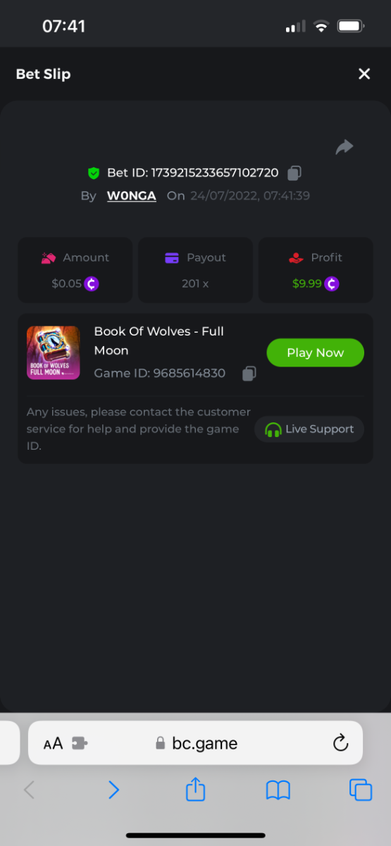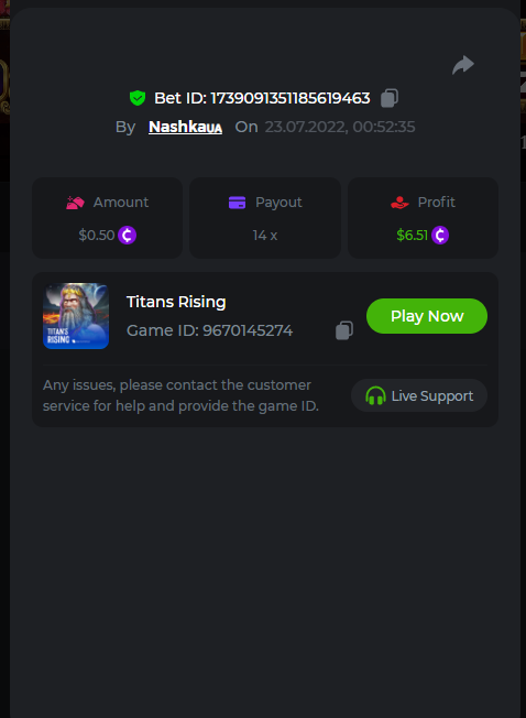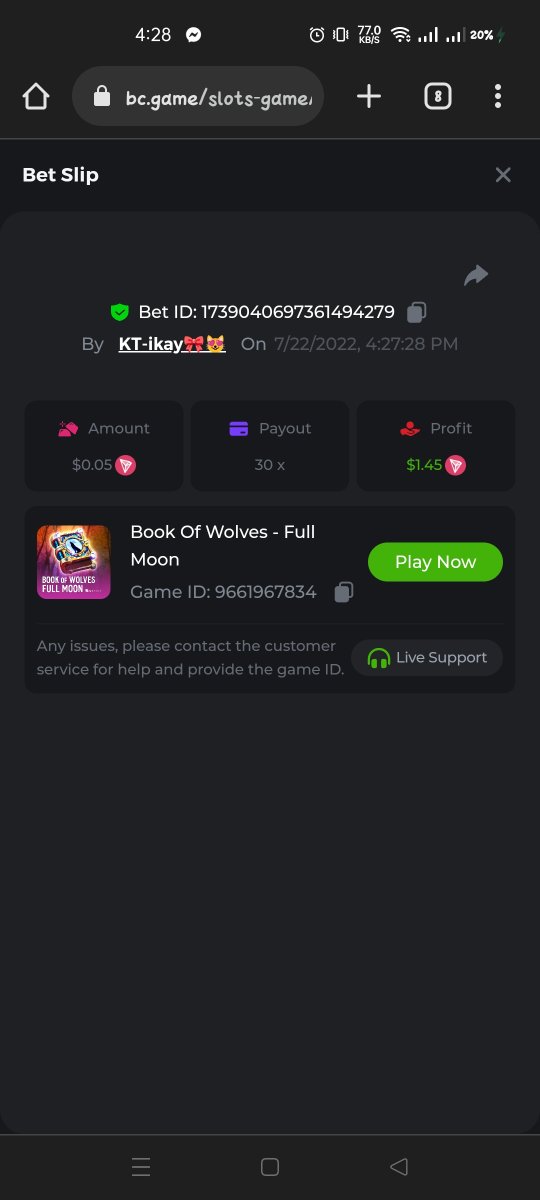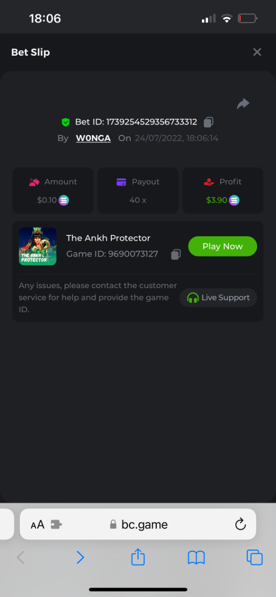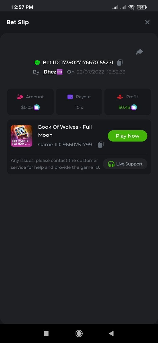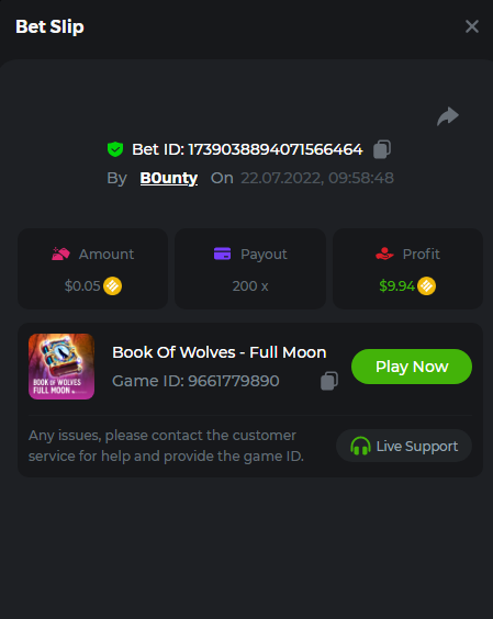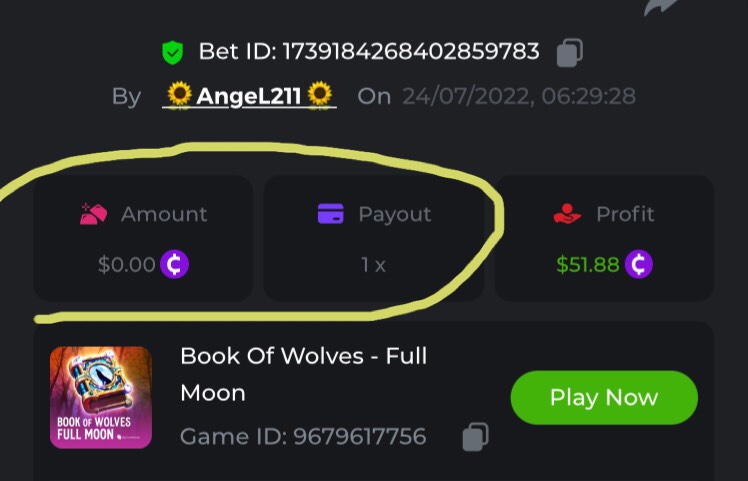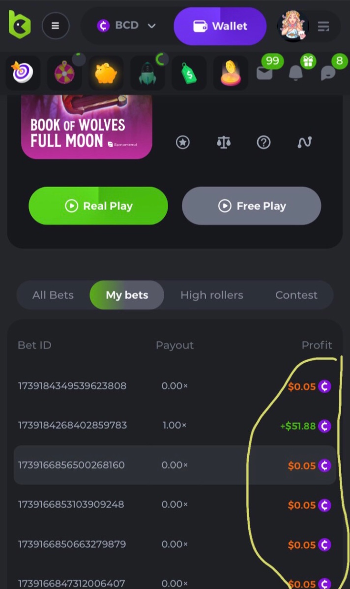 $0.0 bet, 1x multi payout, $51.88 bcd (got ❌ wrong bet id) how come $0.00 bet? the min of that slot is $0.05.