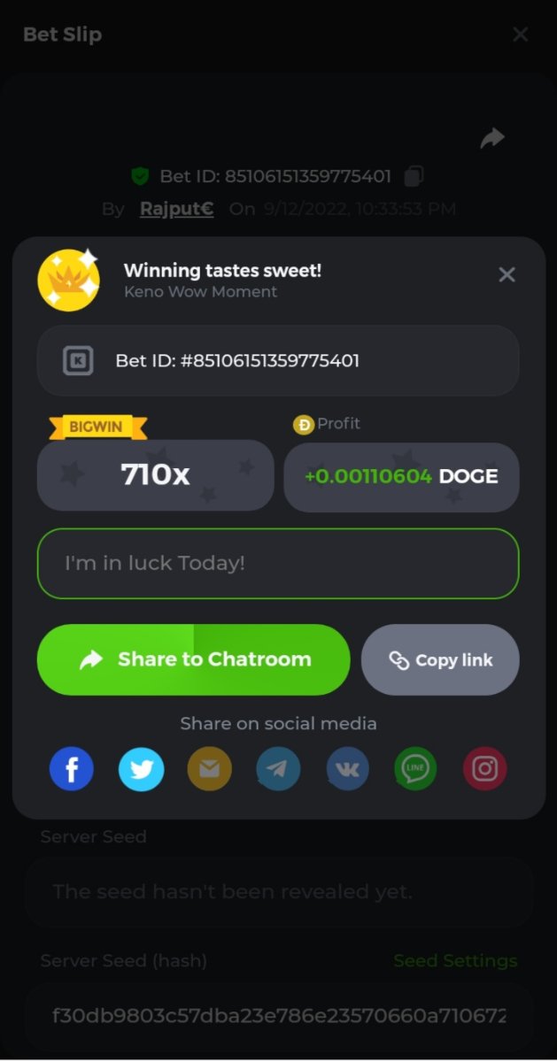Black Tiger Posted September 13, 2022 Author Share Posted September 13, 2022 List of winner Daily challenge #12 Kaj8080. 710xjhonncueva. 500xSuperbet. 450x 🎖MasterO_O. 450x 🎖5th - 10th cTap. 400x sametoyou9211. 400x SaiM. 400x Holdtodie. 350x Chini 350x 99999x. 350x Hello Bc.game Family How to claim your reward for : Hitcoco | Double Flashdrop | Daily Challenges??? These steps help us faster to verify. Step by step how to claim : Make a screenshot about the announcement that your name is there (mark your name) Join here https://t.me/+Wd27k2MRthE5YmY1 And wait for accepting.( If you accepted and didn't answer for 5 min you will be removed and have to join again) Share the screenshot Share the win bet link (daily challenges) Share your flashdrop (double flashdrop) Share UID or Profile linkWait for a response to get the winning code (1-12 hours) please be patient Link to comment Share on other sites More sharing options...