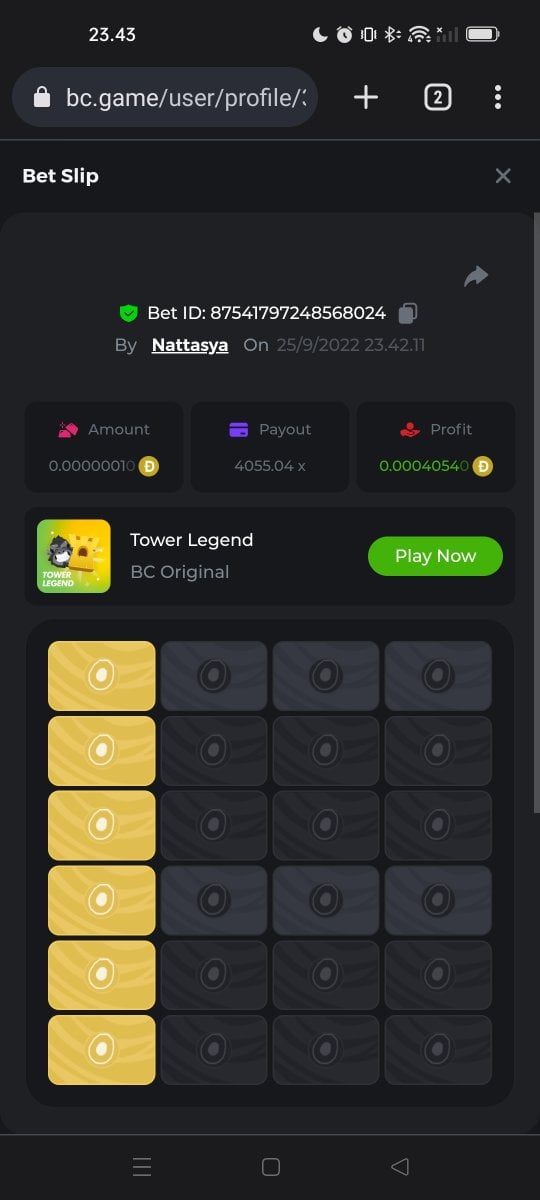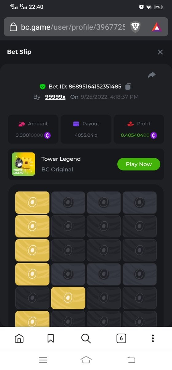 YESLLLLL Posted September 25, 2022 Share Posted September 25, 2022 (edited) 3 hours ago, Black Tiger said: Read Carefully Before Start To Hunt Daily Challenges #25 : Tower Legend Hunt :Win the highest pay outMin Payout requirement 100xMin Level 4️Duration Starting : Now End time : 23.59 UTC Time How to Join? Only Post on BC.Game Telegram Official HEREMake screenshot + paste your bet link + UID or Profile link To get bet link can check HERE Any coin allowedReward Prizes 1st Place....... $7 BCD2nd Place..... $5 BCD3rd Place...... $4 BCD 🎖4th Place......$3 BCD5th Place......$2 BCD 🏵 Winners will be announcing next day after Roll Point ========================== On Going Event $4,000 Top Tier Gameart Multiplier Battle! $2,500 Prestige Savior Sword Challenge #47 Soccer Top 5 league 100% cashback !#2$250 BC.GAME SPORTS PARLAYS CHALLENGES #22$500,000 Spinomenal's Grand Holiday Tournament TOUCHDOWN! NFL 50% Cashback ! #2 https://bc.game/sd/?sd=10TPHINK1PARDF Telegram user name : @Hwar5555 Edited September 25, 2022 by Jbstar247 Link to comment Share on other sites More sharing options...