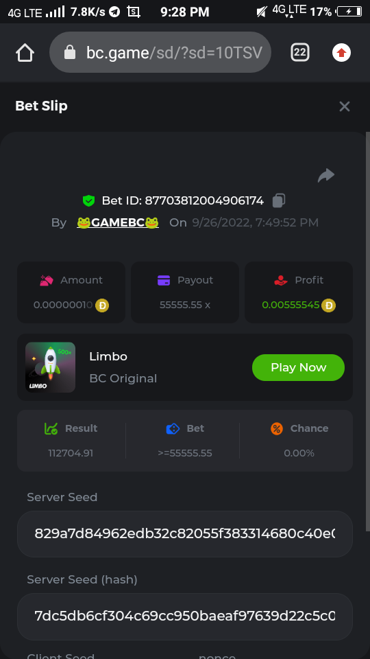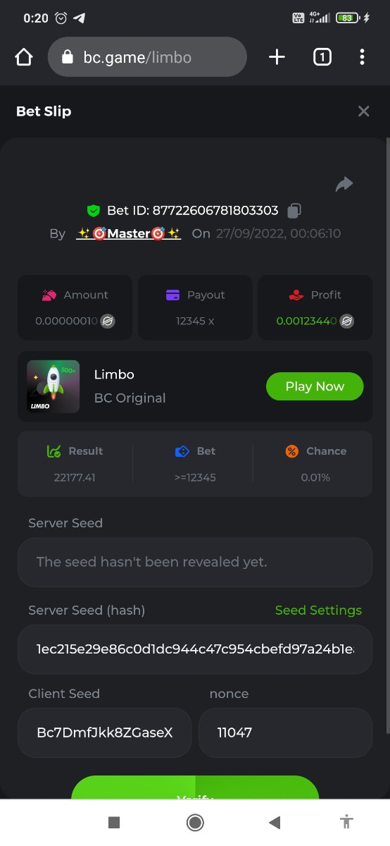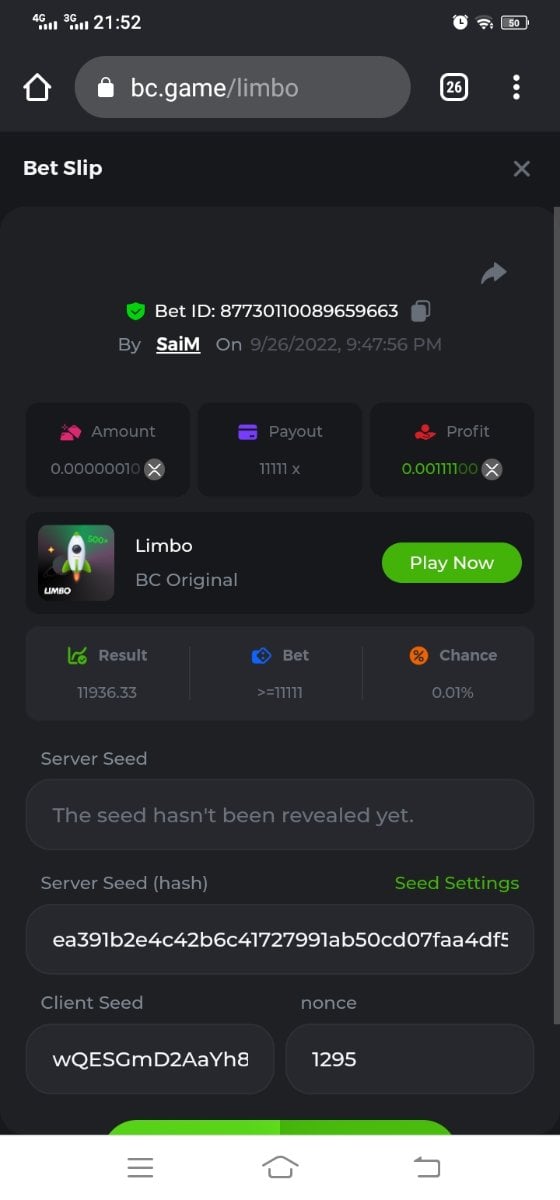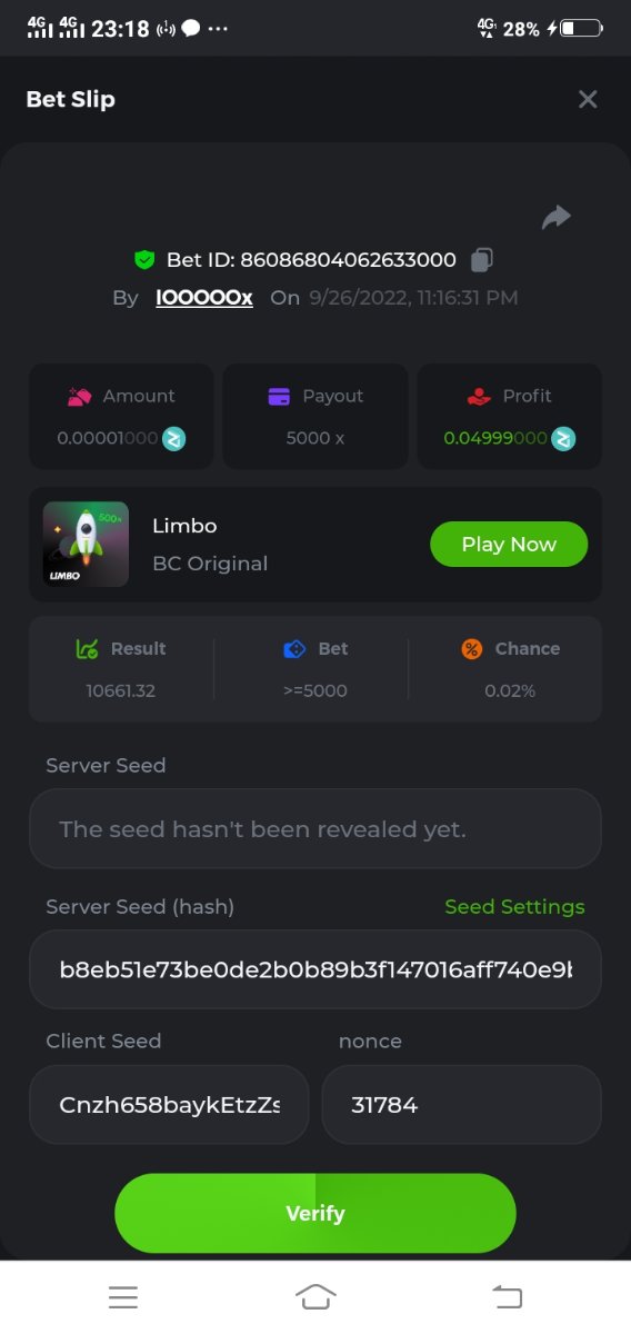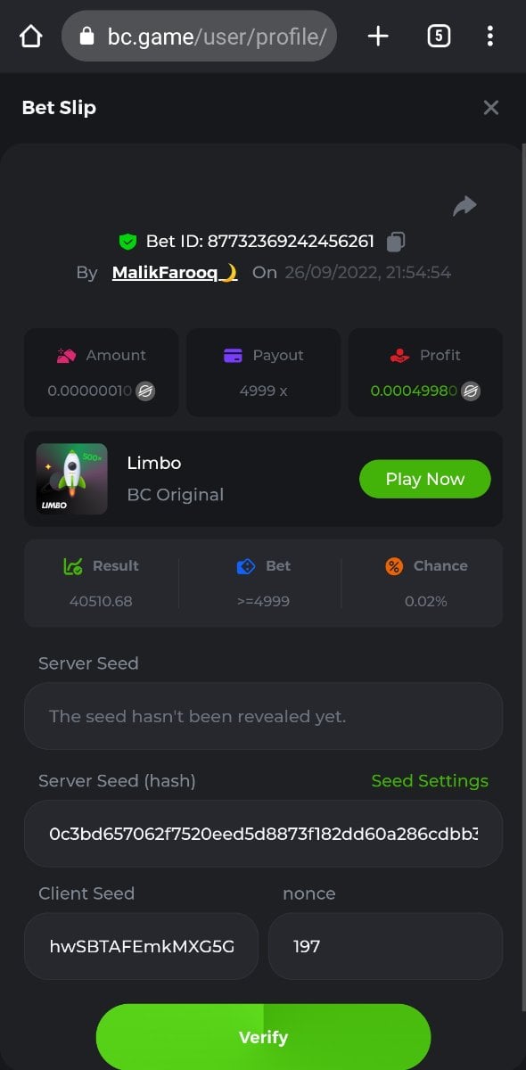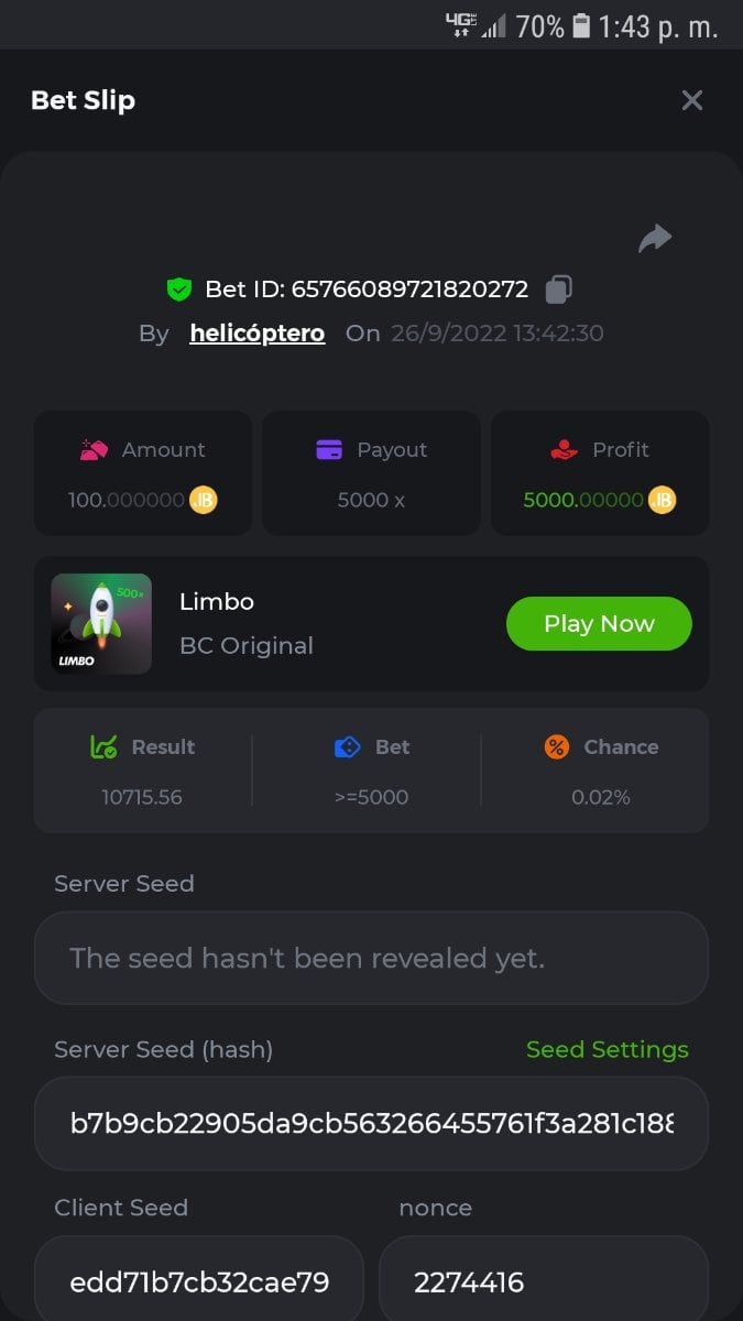 Black Tiger Posted September 26, 2022 Share Posted September 26, 2022 (edited) Read Carefully Before Start To Hunt Daily Challenges #26: LIMBOHunt :Win the highest pay outMin Payout requirement 500xMin Level 4️Duration Starting : Now End time : 23.59 UTC Time How to Join? Only Post on BC.Game Telegram Official HEREMake screenshot + paste your bet link + UID or profile link To get bet link can check HERE Any coin allowedReward Prizes 1st Place....... $7 BCD2nd Place..... $5 BCD3rd Place...... $4 BCD 🎖4th Place......$3 BCD5th - 10th Place......$1 BCD 🏵 Winners will be announcing next day after Roll Point ========================== On Going Event $4,000 Top Tier Gameart Multiplier Battle! $2,500 Prestige Savior Sword Challenge #47 Soccer Top 5 league 100% cashback !#2$250 BC.GAME SPORTS PARLAYS CHALLENGES #22$500,000 Spinomenal's Grand Holiday Tournament TOUCHDOWN! NFL 50% Cashback ! #2 Edited September 26, 2022 by Black Tiger Link to comment Share on other sites More sharing options...