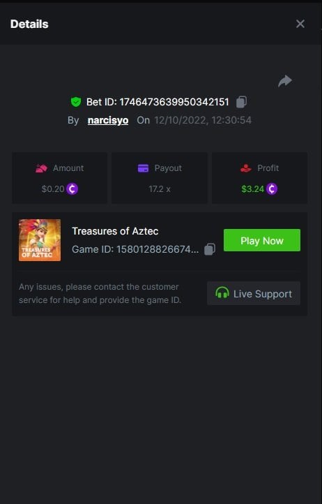 Sm0kes Posted October 13, 2022 Share Posted October 13, 2022 https://bc.game/#/sd/10UYOOAELCX72R Treasure of Aztec (97.3x) smokes Link to comment Share on other sites More sharing options...