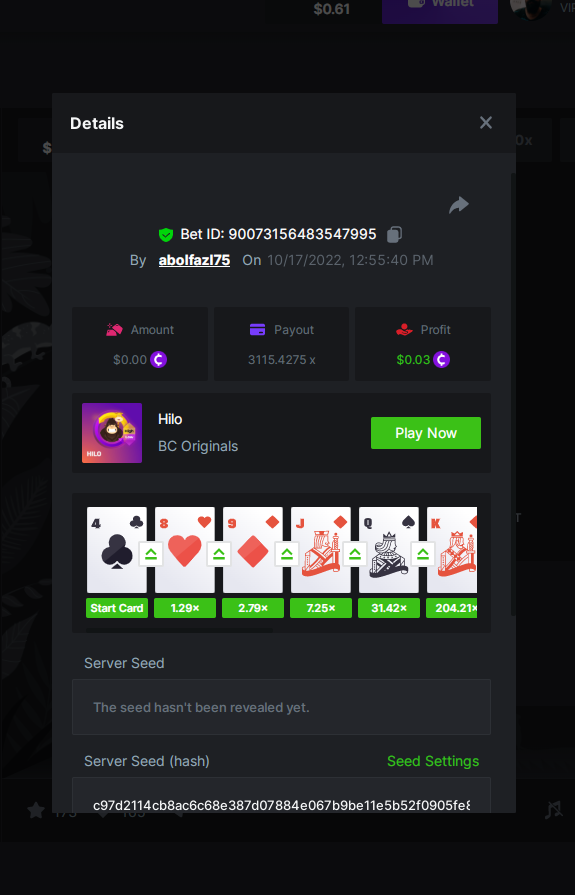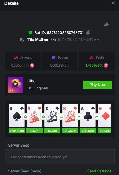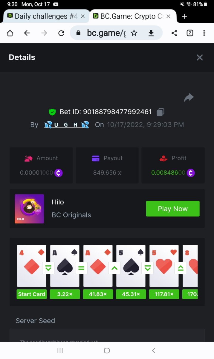 Black Tiger Posted October 17, 2022 Share Posted October 17, 2022 (edited) Read Carefully Before Start To Hunt Daily Challenges #41: HILOHunt :Win the highest pay outMin Payout requirement 100xMin Level 4️Duration Starting : Now End time : 23.59 UTC Time How to Join?Make screenshot + paste your bet link + UID or Profile link Any coin allowedReward Prizes 1st Place....... $7 BCD2nd Place..... $5 BCD3rd Place...... $4 BCD 🎖4th Place......$3 BCD5th - 10th Place......$1 BCD 🏵 Winners will be announcing next day after Roll Point Edited October 17, 2022 by Black Tiger 2 Link to comment Share on other sites More sharing options...