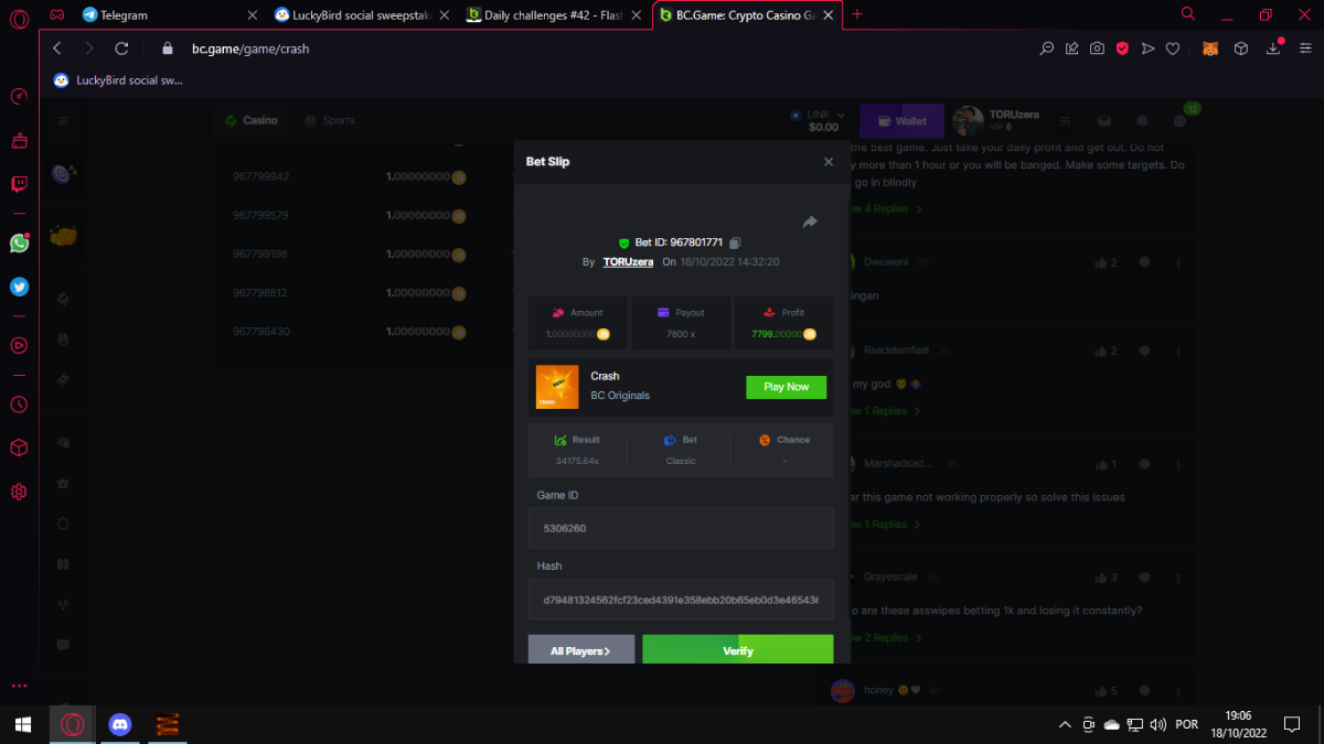 Black Tiger Posted October 18, 2022 Share Posted October 18, 2022 (edited) Read Carefully Before Start To Hunt Daily Challenges #42: CrashHunt :Win the highest pay outMin Payout requirement 50xMin Level 4️Duration Starting : Now End time : 23.59 UTC Time How to Join?Make screenshot + paste your bet link + UID or Profile link Any coin allowedReward Prizes 1st Place....... $7 BCD2nd Place..... $5 BCD3rd Place...... $4 BCD 🎖4th Place......$3 BCD5th - 10th Place......$1 BCD 🏵 Winners will be announcing next day after Roll Point Edited October 18, 2022 by BCGame_Mat Link to comment Share on other sites More sharing options...