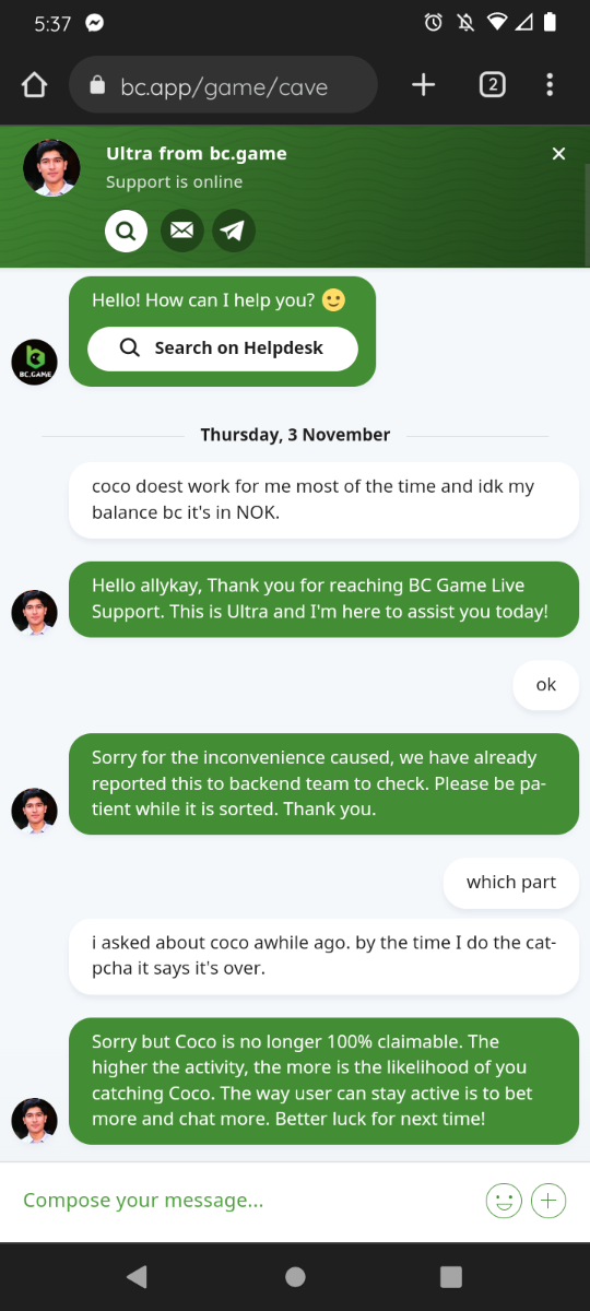 haha it was clear but I have not clicked on COCO for a long time because only network error etc. comes up and is not worth the few cents