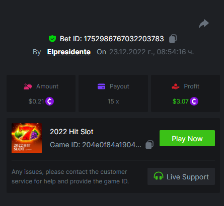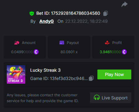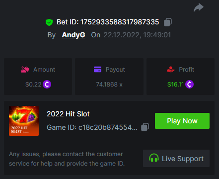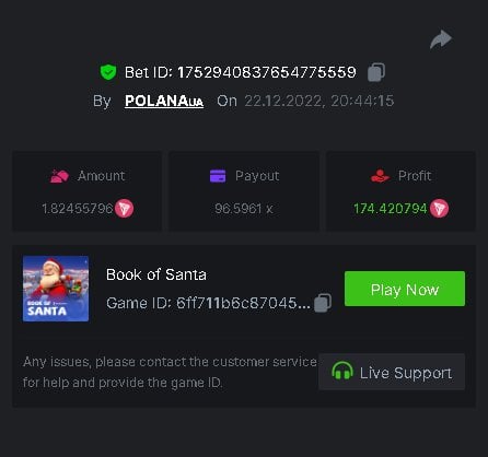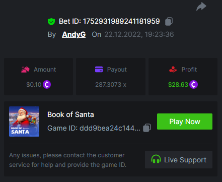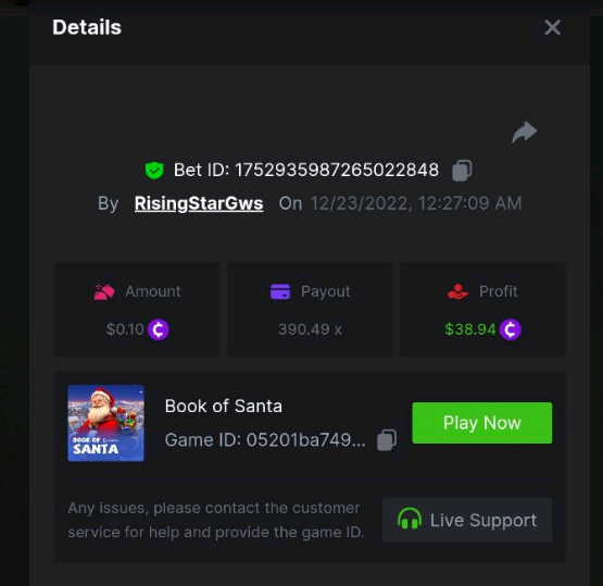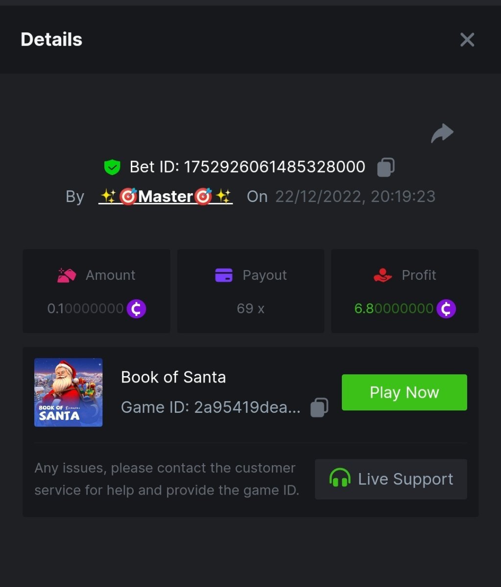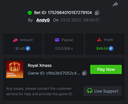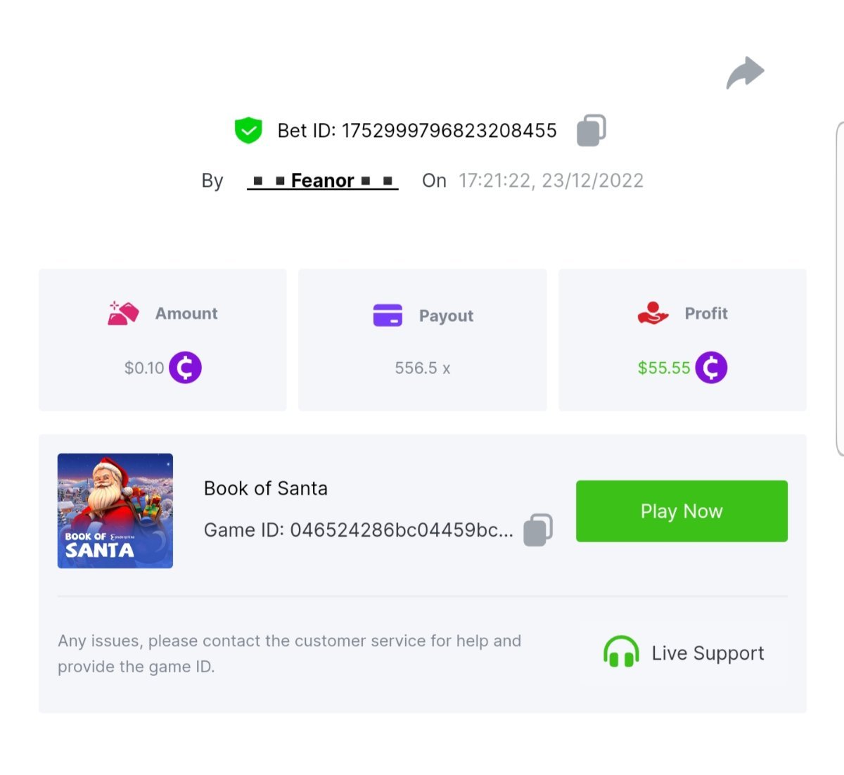BCGame_Ewa Posted December 20, 2022 Share Posted December 20, 2022 (edited) Starts: 22, December 12:30pm GMTEnds: 28, December 12:30pm GMT Hey Everyone! Christmas is nearby and we wanted to invite you to join our special Christmas hunt on Endorphina games. Prepare yourself and compete in our event, your challenge is accomplishing the highest multiplier in six selected games. The prize pool of up to $4,000 will be split among the winners. With incredible odds and a vast reward up for grabs, join us in this fantastic event and take some gifts from Santa's Bag! – (More details below). Eligible Games Win the highest multiplier on the Endorphina games listed below 2022 Hit Slot Book of Santa Chance Machine 40 Hell Hot 100 Lucky Streak 3 Royal XMass The highest multiplier reached in each game will be added together and counted as total points. Bonus buys are allowed. If the player submits multiple winning entries for the same game, the entry with the highest multiplier will be valid. How to Enter Access the game to select your Bet ID, click on the Share icon (↷) and then Copy link. Return to the topic, paste the link in the field "Reply to this topic..." E.g.: https://bc.game/#/sd/10ZN5EX3G8K4CZ Each eligible entry must have the Bet Slip URL, the non-inclusion of the link will disqualify participation in the event. In the same post, upload a screenshot of your win by clicking the game ID WITH VIEW IN USD mode ENABLED (accessible at the bottom of dropdown menu for your wallet up top, and Submit Reply. Done! This way, we can ensure that your bet indeed met the minimum requirement at the time of placing it: Example post - Link: https://bc.game/#/sd/10ZN5EX3G8K4CZ Minimum VIP Tier Must be VIP04 or higher in order to enter this event. Minimum Payout Minimum payout to qualify is 10x (in any game) for a valid entry. Minimum Bet Size 2022 Hit Slot - $0.22 Book of Santa - $0.10 Chance Machine 40 -$0.40 Hell Hot 100 - $1.00 Lucky Streak 3 - $0.05 Royal XMass - $0.40 Eligible Coins All cryptocurrencies are eligible (excepting JB, and BCL). Free Play Mode is not valid for this event. Prize Pool & Reward Breakdown The winners will win a share of the prize pool based on the detailed ranking below. Please combine all of your hits together in a SINGLE post. Edit your existing post for additional hits, don't create a new post. Each eligible entry must have the Bet Slip URL, failure to include it will disqualify participation in the event. Bet Slip image is not mandatory. Bets must be posted within 24 hours of placing bet in order to keep things fair for everyone. Bets must be made during the specified time window stated above. This thread will lock automatically when the time period is over. One (1) entry per household. Anyone found attempting to win multiple prizes will be disqualified from this challenge as well as all future challenges. Failure to follow instructions will result in your submission being null and void. By entering this challenge, you acknowledge that BC.Game has the final decision on results and placement. Payouts will be distributed after the event is finished. Please note that it could take up to 48 hours after the completion of the event. Good luck everyone! Merry Christmas! Edited December 28, 2022 by BCGame_Maxim new banner 3 Link to comment Share on other sites More sharing options...