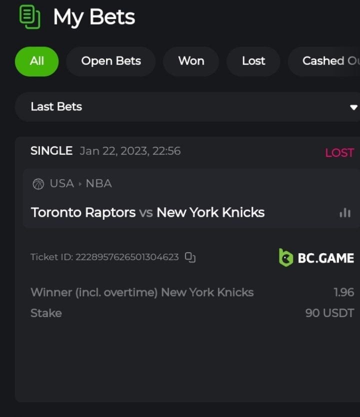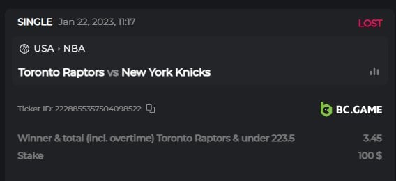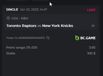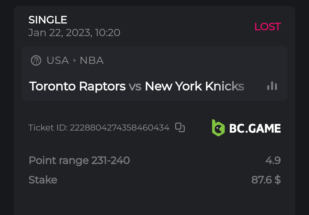• Bet result with “LOST” is valid to submit.
