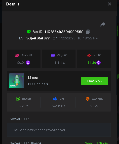 bassabar Posted January 22, 2023 Share Posted January 22, 2023 (edited) Was actually for another challenge https://bc.game/#/sd/111W230X59D1QR https://bc.game/#/user/profile/2133151 Edited January 22, 2023 by bassabar 1 Link to comment Share on other sites More sharing options...