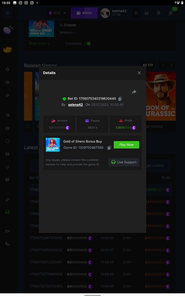Ciciaq Posted January 26, 2023 Share Posted January 26, 2023 Gold of Sirens Bonus Buy - 57.35x https://bc.game/#/sd/11282WVPKUT8GJ Rueda De Chile Bonus Buy - 58.56x https://bc.game/#/sd/1127WIMREXW55F Hot Volcano Bonus Buy - 100.10x https://bc.game/#/sd/1127ZYTE7EYVIR Mega Greatest Catch Bonus Buy - 120.12x https://bc.game/#/sd/1127XRCR8O1RTF Juicy Gems Bonus Buy - 39.04x https://bc.game/#/sd/1127Y350U9QEQB Hot Triple Sevens Special - 106.11x https://bc.game/#/sd/1127YKK7NOA4NN Inner Fire Bonus Buy - 37.24x https://bc.game/#/sd/1127ZOEN4DQCCZ Massive Luck - 77.58x https://bc.game/#/sd/112817H65XPZ4J ========================================================= Bounty - 50x https://bc.game/#/sd/11283HK6V7NAC3 Link to comment Share on other sites More sharing options...