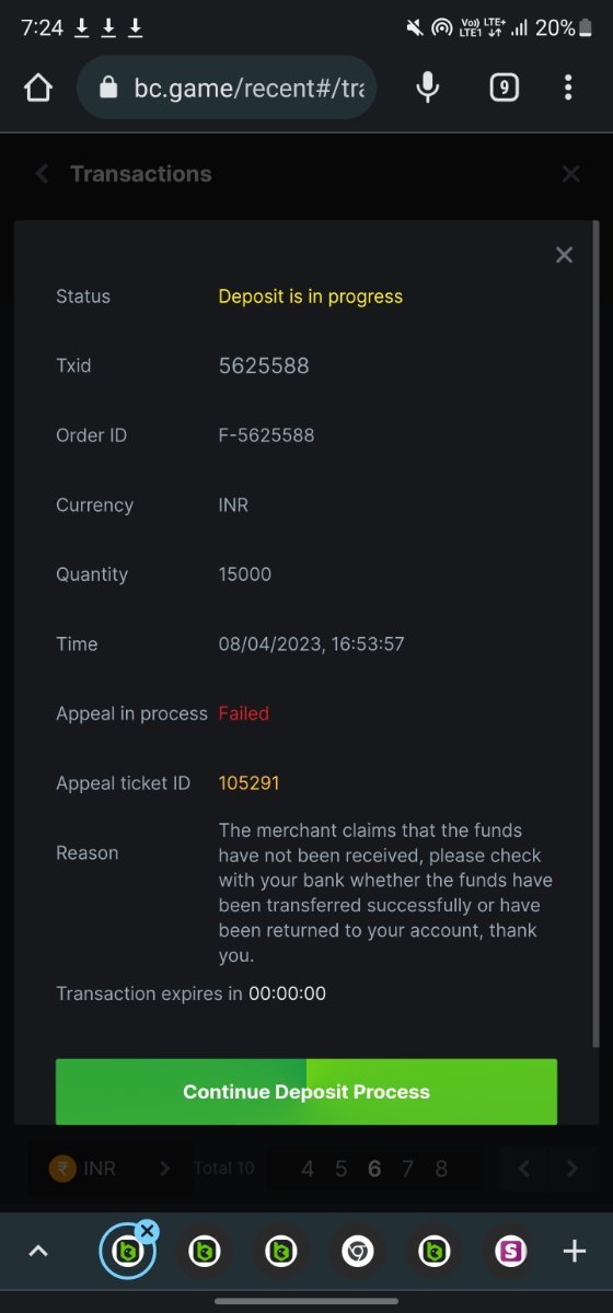 My deposit hasn't arrived it's 7th day when I asked the support team they said to ask the bank.