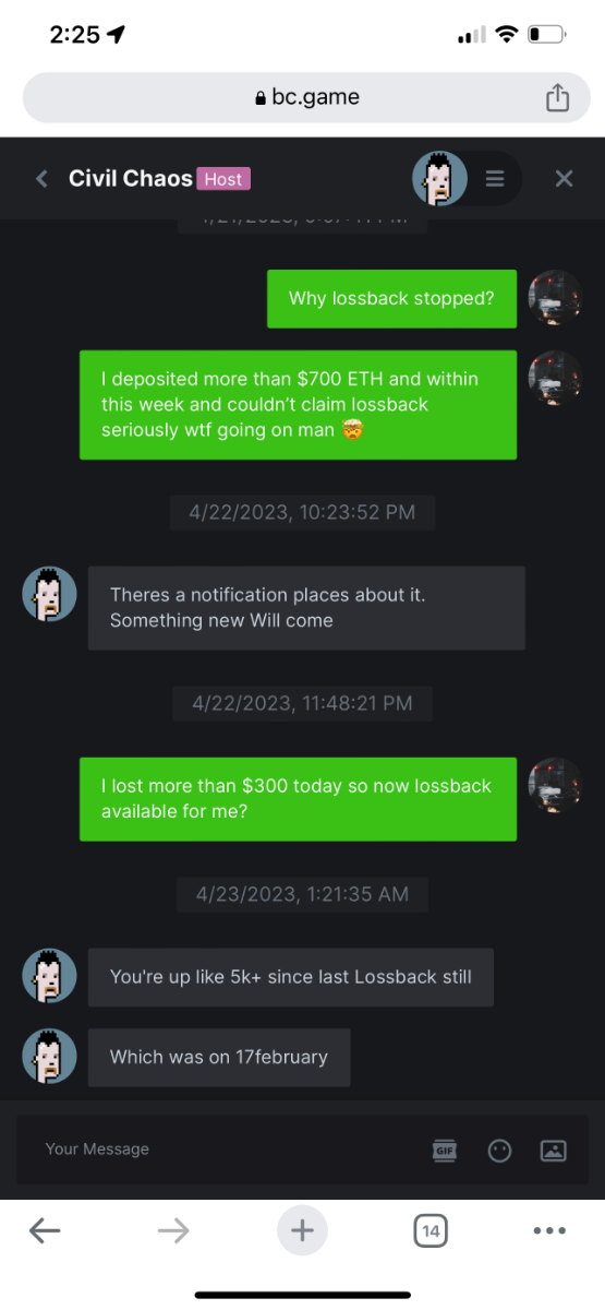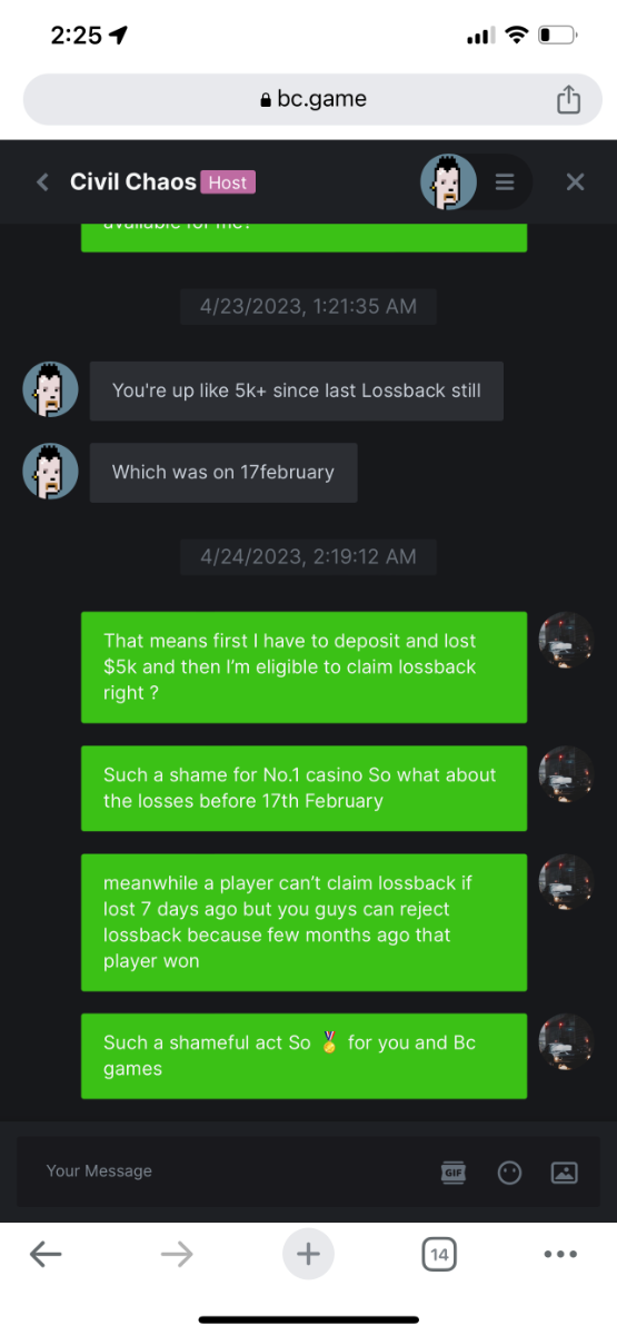 Deep4788 Posted April 24, 2023 Share Posted April 24, 2023 meanwhile a player canβt claim lossback if lost 7 days ago but bc.games can reject lossback because few months ago that player won . So I feel that is such a shame for so called Number 1 Casino in the world Β such a shame, for bc.games. I add screenshots of conversation with my host. Link to comment Share on other sites More sharing options...