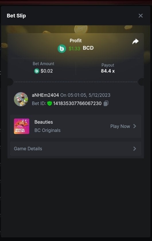 4th place . . . .  3$ BCD  - baccarar - 111.6x  1.36