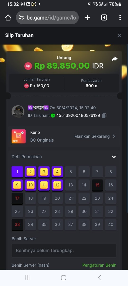 Moderator Giandreas Posted April 30, 2024 Moderator Share Posted April 30, 2024 Read Carefully Before Start To Hunt Forum Daily Challenges #586Hunt : Keno Win the highest pay out Min Payout : x90 Min Level 10️Duration Starting : Now End time : 23.59 UTC Time How to Join? Make screenshot + paste your bet link + UID or Profile link Any coin, with min bet 0.01 USD is allowed (jb/bb/bcl not allowed)Reward Prizes 1st Place.....$7 BCD 2nd Place.....$5 BCD 3rd Place.....$4 BCD 4th Place.....$3 BCD 5th Place.....$2 BCD 🏵 Winners will be announcing next day after Roll Point! 1 Link to comment Share on other sites More sharing options...