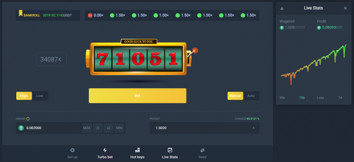 1. Chose your base bet - I've chosen 0.002 USDT