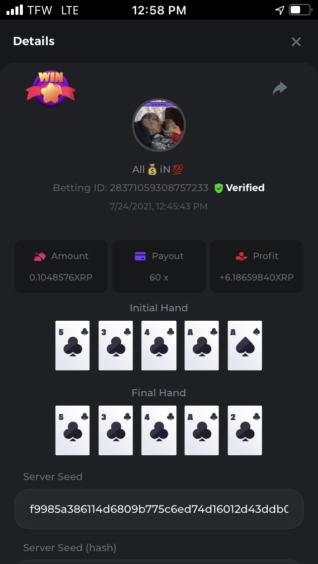 TrumpTight Posted July 24, 2021 Share Posted July 24, 2021 Hell yeah I’ve probably played 5,000 hands and four of a kind was my best win. U til today, wish I bet more on it lol. Coco do u like?! Link to comment Share on other sites More sharing options...