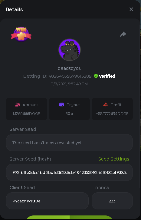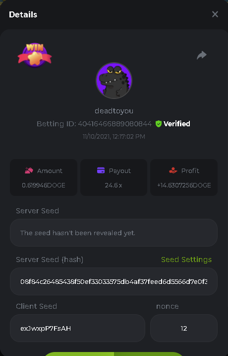 • In the same post, upload a screenshot of your win by clicking the game ID WITH VIEW IN USD mode ENABLED (accessible at the bottom of dropdown menu for your wallet up top. This way, we can ensure that your bet indeed met the minimum requirement at the time of placing it: