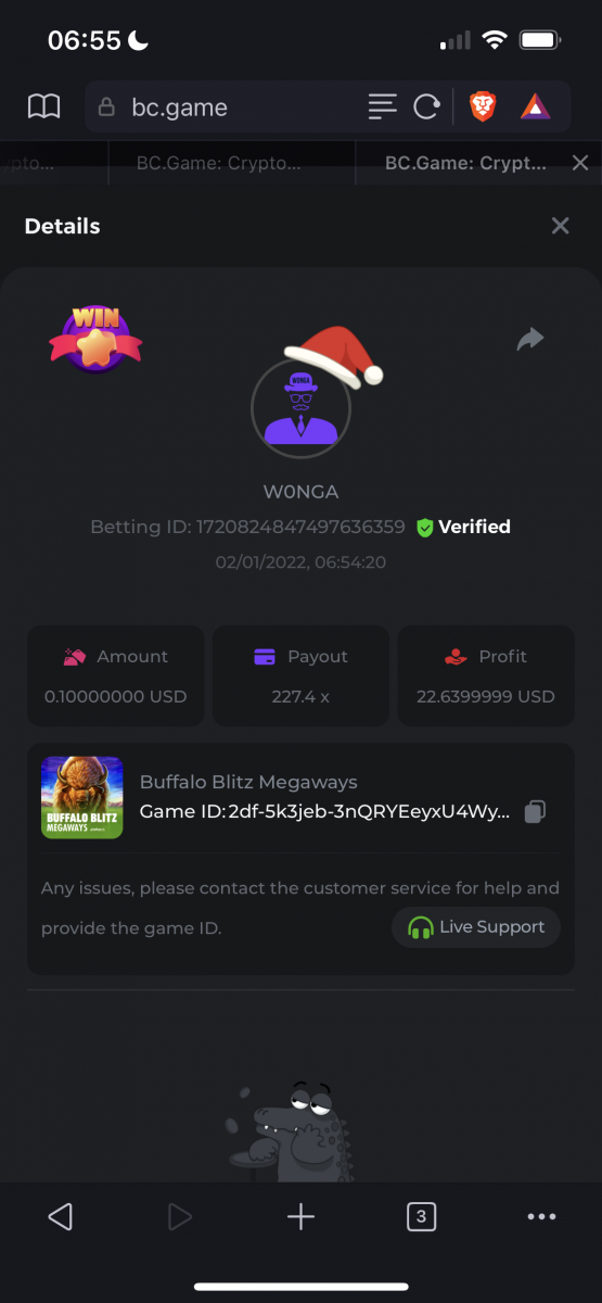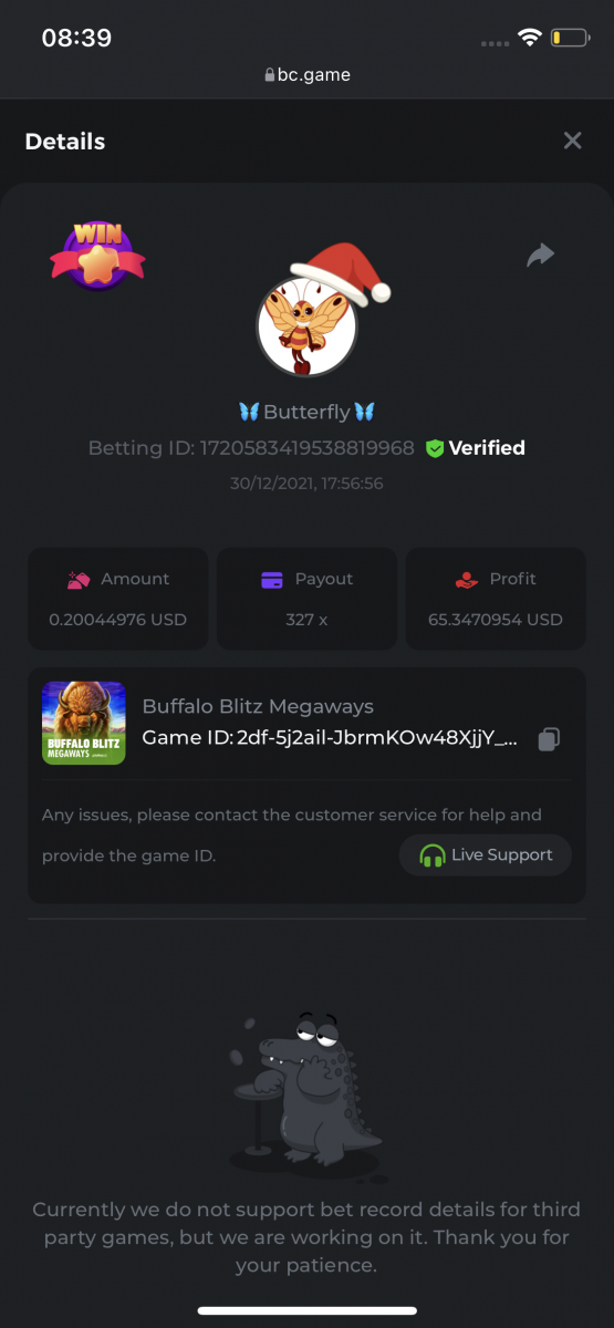 W0NGA Posted January 2, 2022 Share Posted January 2, 2022 Betting ID: 1720824847497636359 Buffalo Blitz 227.4x Link to comment Share on other sites More sharing options...