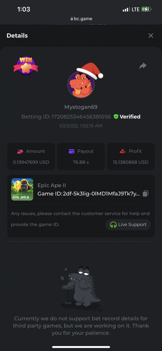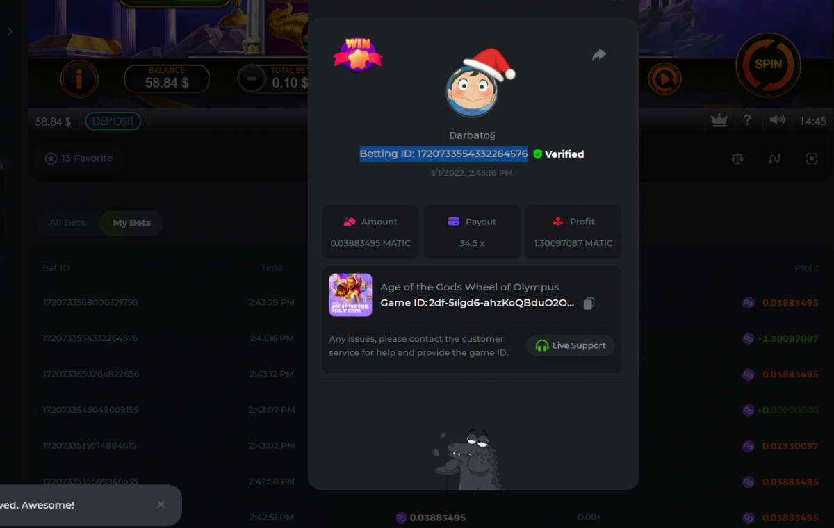 Event Team Niobium Posted January 10, 2022 Author Event Team Share Posted January 10, 2022 Congratulations to the winners and well done to everyone who participated in the Top Tier Playtech Battle. We had 25 valid entries, and all prizes have now been distributed! Check out the detailed ranking below Ranking 1st $500 - Hoya_ 2nd $250 - Sleepiez 3rd$150 - Elpresidente 4th $100 - CivicMe 5th $50 - BARBAT0S 6th $50 - Erifyli 7th $50 - Mystogan69 8th $50 - Mbp19xx 9th $50 - Elsabe 10th $50 - Cryptoprem 11th $33.33 - luckypankaj 12th $33.33 - MaksatMe 13th $33.33 - Yhum 14th $33.33 - W0NGA 15th $33.33 - stomps 16th $33.33 - BitsCheerful 17th $33.33 - selena42 18th $33.33 - Флинт 19th $33.33 - Satoshimaker 20th $33.33 - DFdubG 21th $33.33 - Monstrous Eberto 22th $33.33 - Almaryoww 23th $33.33 - stopmuna 24th $33.33 - Kristalina 25th $33.33 - Mkulet 200x multiplier - Bounty winners! - $200 Prize pool 7 players completed the extra bounty, $28.57 each for each. $28.57 - Hoya_ $28.57 - Sleepiez $28.57 - CivicMe $28.57 - BARBAT0S $28.57 - Erifyli $28.57 - luckypankaj $28.57 - W0NGA Don't miss our upcoming weekly challenges. Check out all our available events here. Link to comment Share on other sites More sharing options...