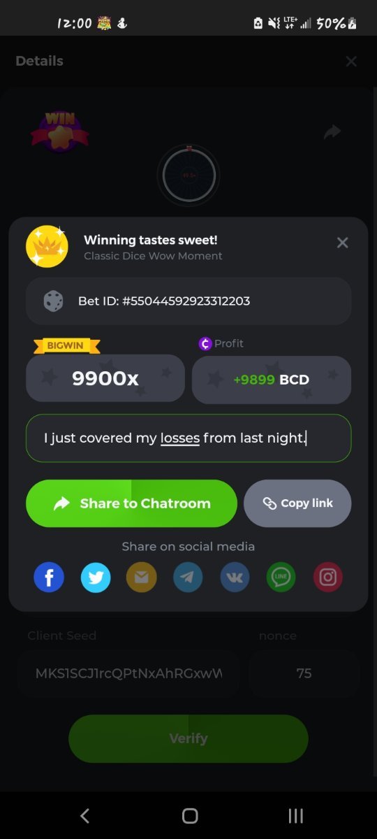 Jbrewer Posted March 10, 2022 Share Posted March 10, 2022 Had a nice hit tonight. Betting 1 BCD on dice. 9900x in under 100 rolls. 10k my way. Link to comment Share on other sites More sharing options...