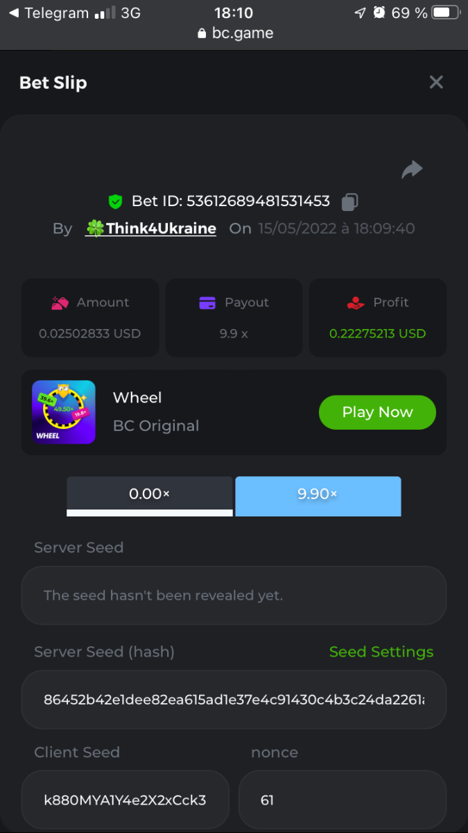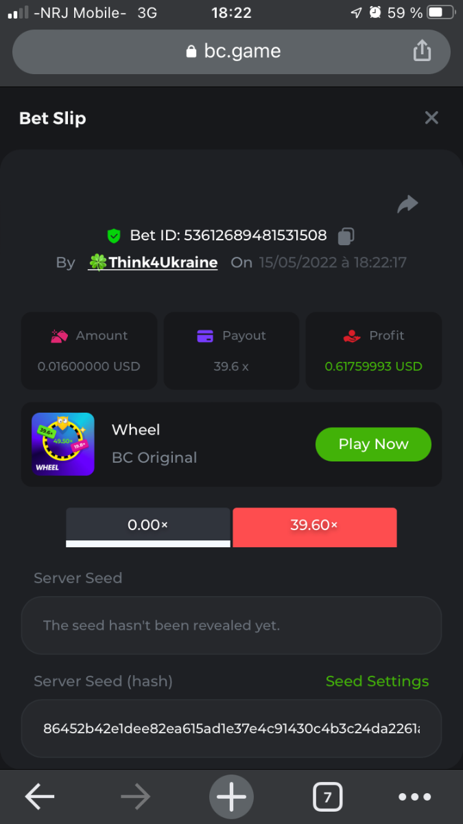Accédez au jeu pour choisir votre ID de pari, cliquez sur l'icône Partager (↷) puis sur Copier le lien Dans le même message, téléchargez une capture d'écran de votre gain en cliquant sur l'ID du jeu et En mode USD ON