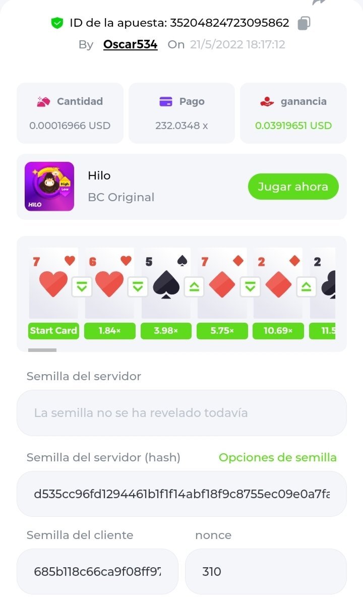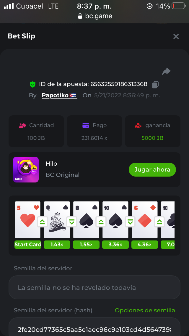 s0urce Posted May 21, 2022 Share Posted May 21, 2022 (edited) Challenge en Hilo! Por cada 200x (o superior) que compartan, será 1 punto, los jugadores con más puntos serán los ganadores. Premios 1er puesto... 25 BCD 2do puesto... 20 BCD3er puesto... 15 BCD 4to puesto... 10 BCD 5to-8vo puesto... 5 BCD Reglas No publiques apuestas viejas Debes ganar la apuesta Puedes solamente ganar 1 puesto Se vale skipear No se pueden guardar las apuestas para el final, en cuanto las acierten deben compartirlas. Si rompes alguna de las reglas, se invalidará tu apuesta. Requisitos No hay mínimo de apuesta, puedes apostar incluso con JB o GB No hay mínimo de nivel Ser de la sala de Español Debes tener solo 1 comentario En caso de un empate, el jugador que primero haya acertado la apuesta, gana. Cómo entrar Acceda al juego para seleccionar su ID de apuesta, haga clic en el ícono Compartir (↷) y luego Copiar enlace. Regrese al hilo, pegue el enlace en el campo "Reply to this topic..." Por ejemplo: https://bc.game/sd/?sd=10JWOS9KSHZ0NN En la misma publicación, cargue una captura de pantalla de su victoria haciendo clic en la ID del juego CON VISTA EN modo USD HABILITADO (accesible en la parte inferior del menú desplegable para su billetera en la parte superior) y Enviar respuesta. ¡Listo! De esta manera, podemos asegurarnos de que su La apuesta cumplió con el requisito mínimo en el momento de realizarla: Buena suerte a todos! Edited May 22, 2022 by s0urce Link to comment Share on other sites More sharing options...