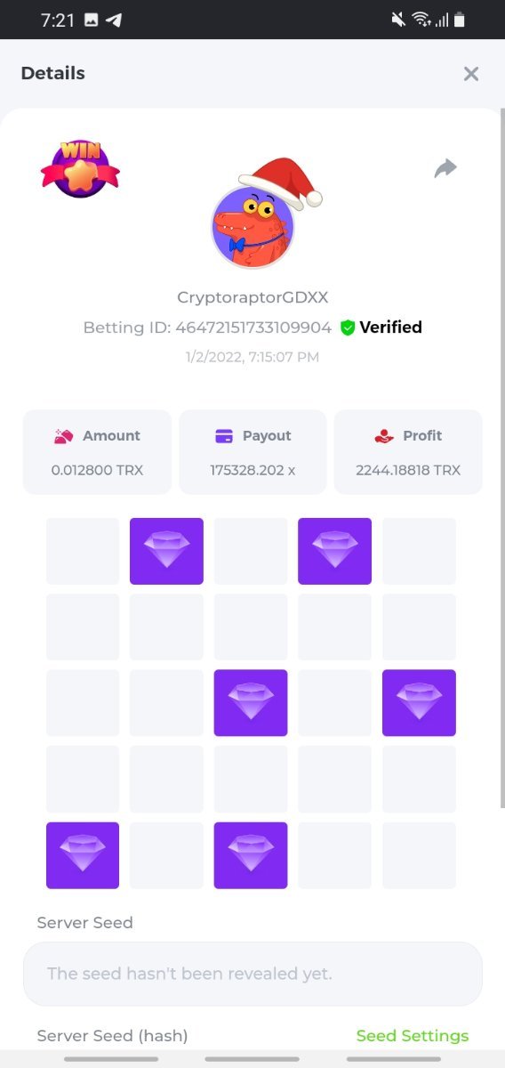 aye mine would be when i won 1300$ in btc with a 900+ multi on mines level 17 by getting 5 diamond spots then immediately after that getting a 1000+ multi on level 11 for getting 9 diamond spots 50 cent bet made another 500+ on top of the 1300